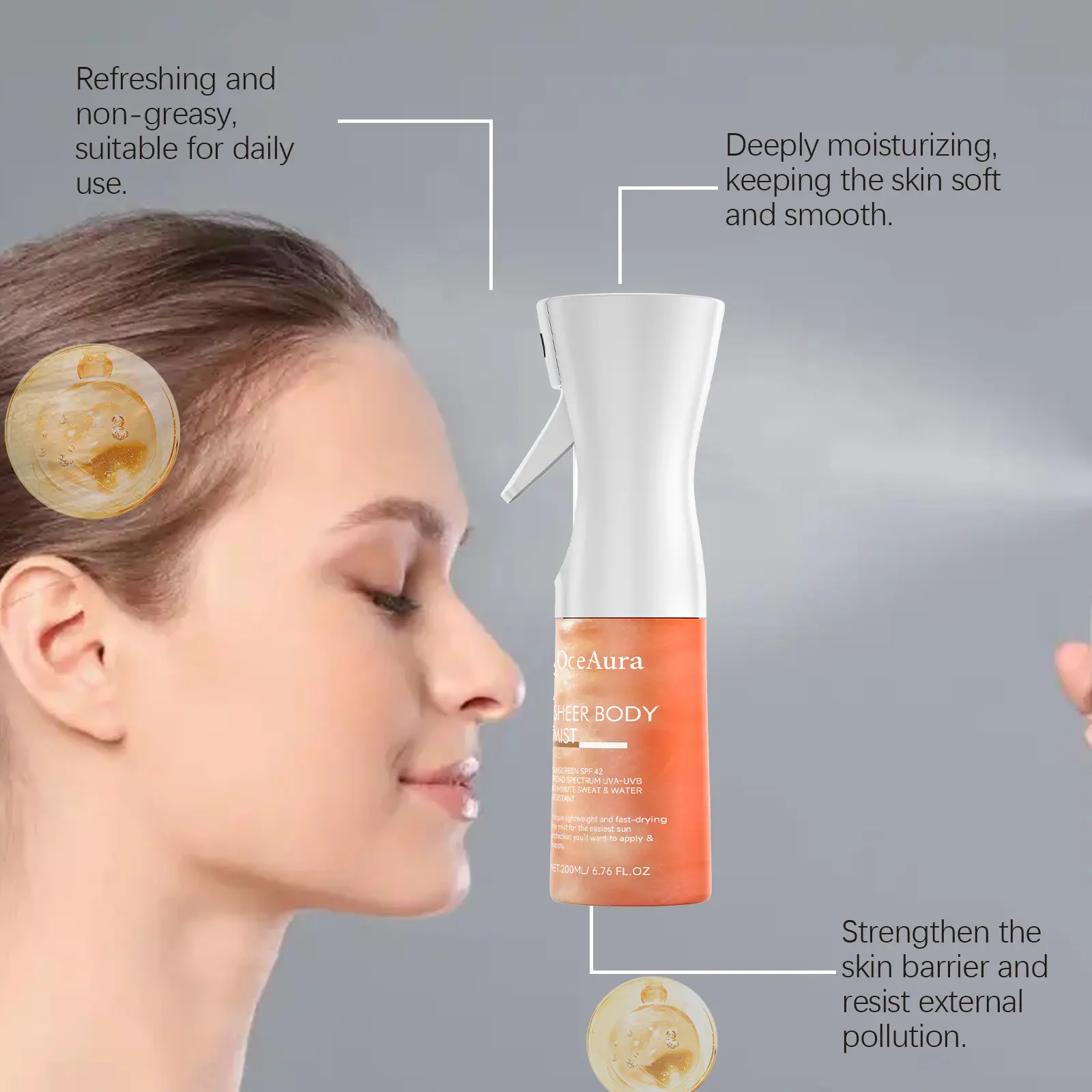 Natural nourishment, caring for the skin: rich in flowers and natural plant ingredients, deeply nourishing the skin, improving skin quality, and presenting a perfect sunny and beautiful skin effect.Natural plant extracts bring a pleasant user experience.