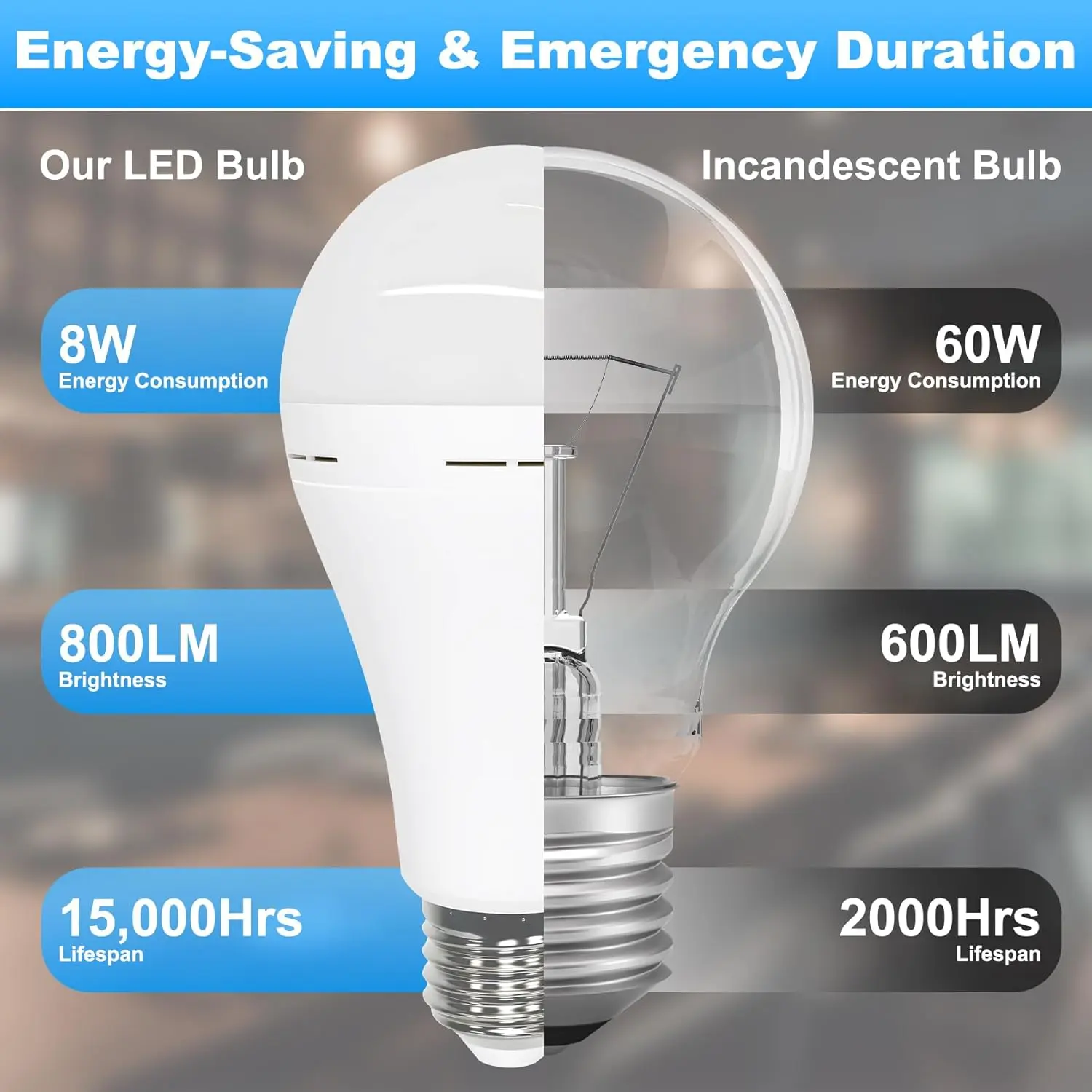 ·[ Energy Saving Bulb ] - 800-850 lumens emergency bulb with low energy cost and long term use. With energy efficient LED chip, you can save at least 80% of energy and electricity bill. Ideal for you to reduce your electricity bill.