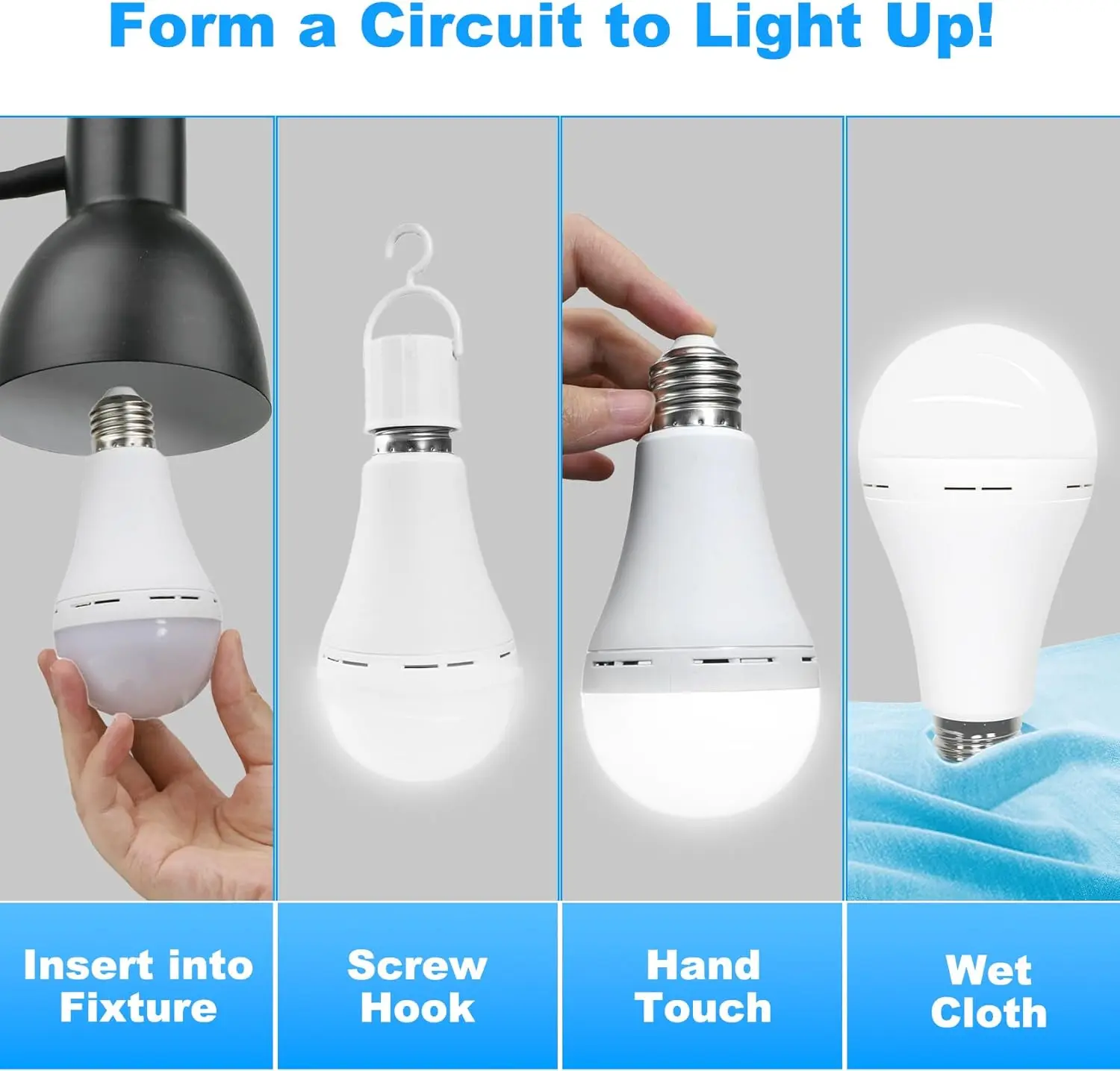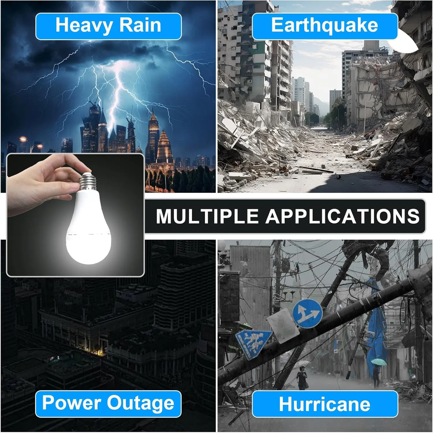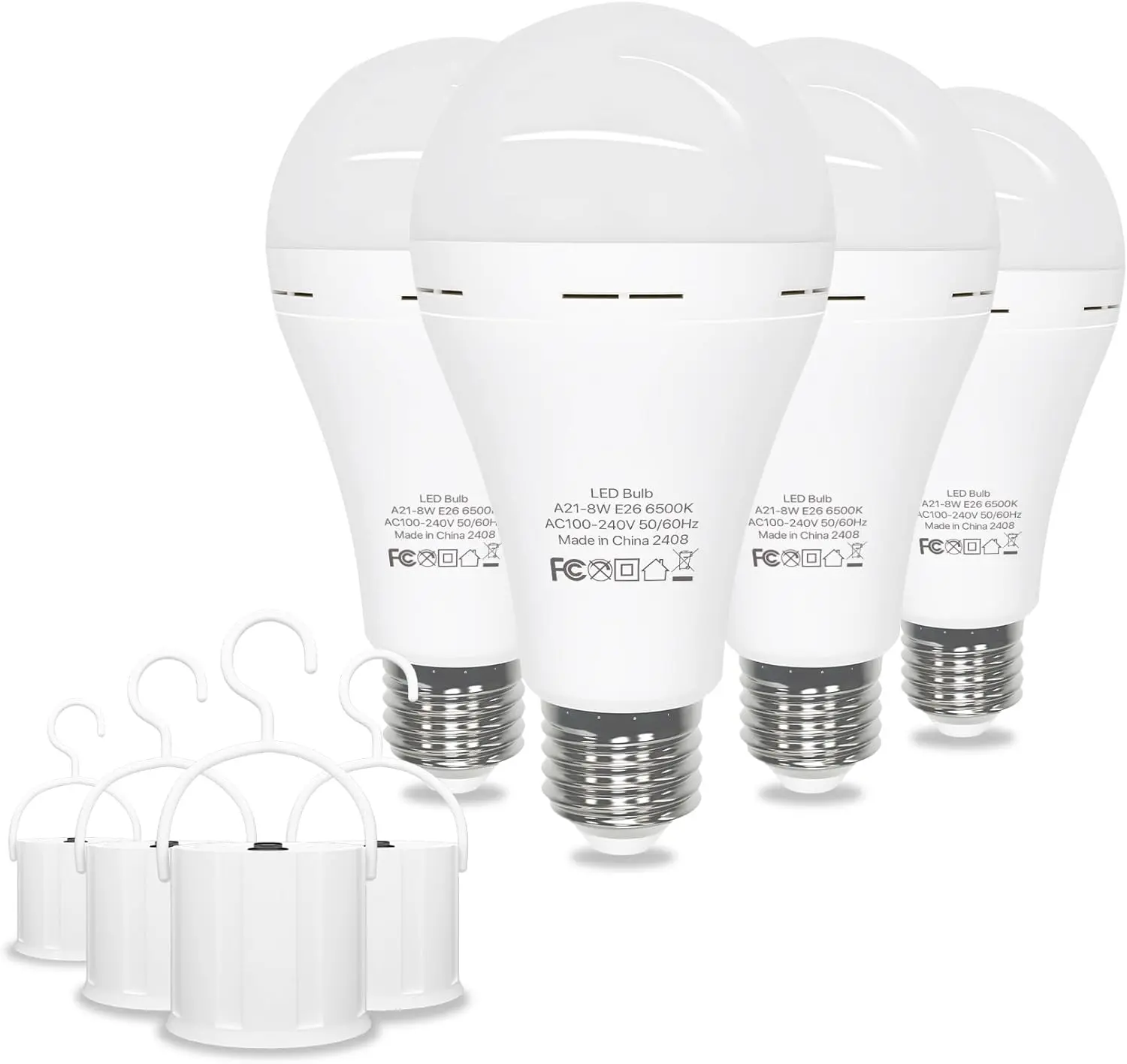 ·[ Daylight LED bulbs and convenient hook ] These rechargeable light bulbs can be applied like normal LED bulbs (E27/E26). Each comes with a hat hook switch, perfect for outdoor activities such as camping, necessities in case of power outages, storms, hurricanes, etc. Say goodbye to extra candles, flashlights and lanterns.
