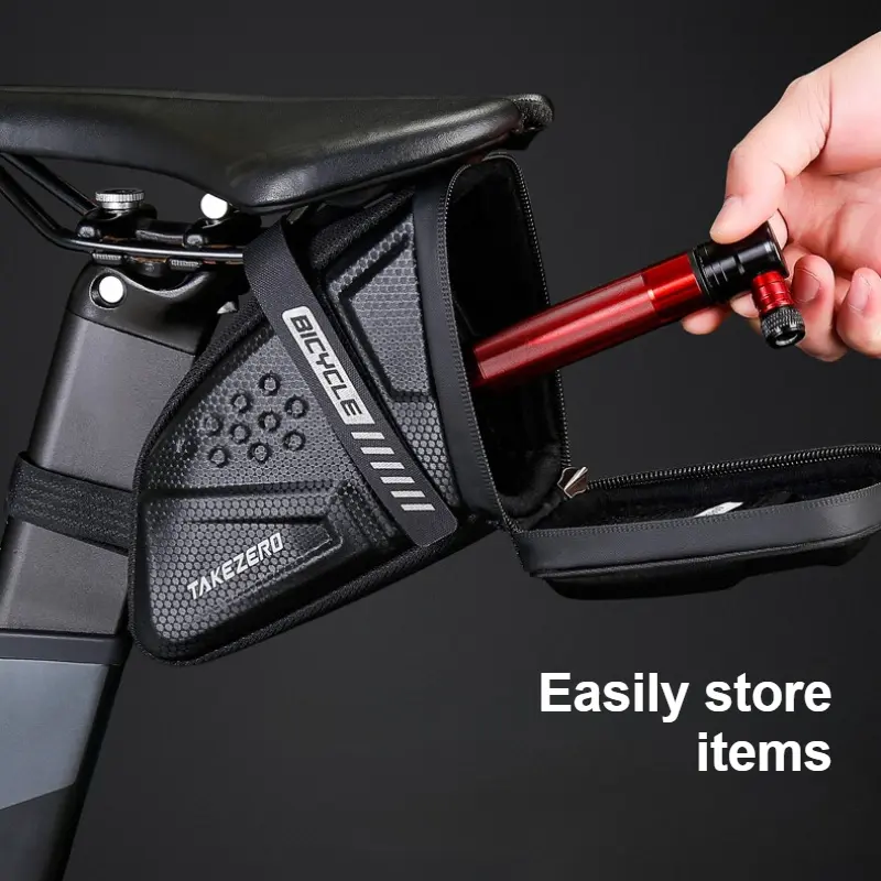 Upgrade your ride with the TAKEZERO ultra-durable, waterproof EVA hard shell bike saddle bag—your ultimate on-the-go storage solution! Designed for mountain biking, road cycling, and daily commutes, this bag keeps your essentials safe, dry, and within reach while keeping your ride sleek and unbulky.