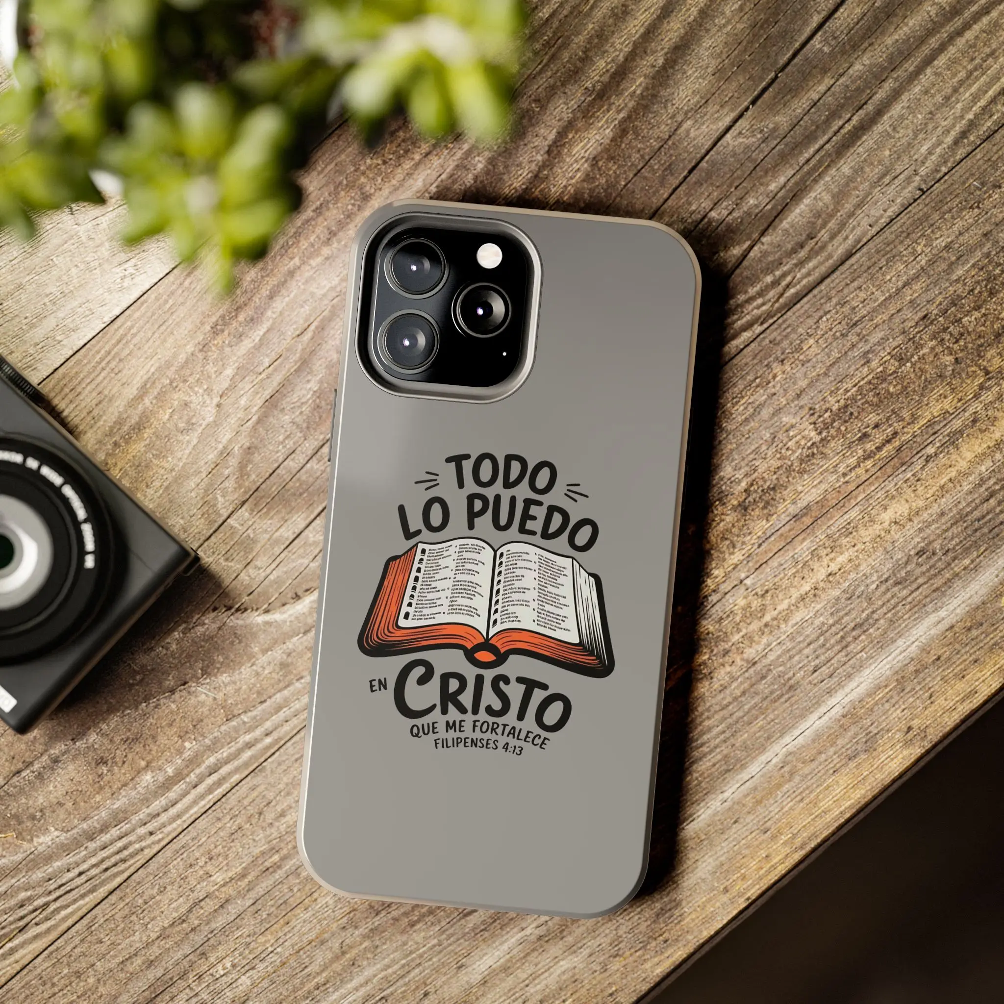 Spanish Christian Bible Verse Phone Case - Todo Lo Puedo En Cristo - Philippians 4:13 Inspirational Faith Case for iPhone 7-17 Pro Max