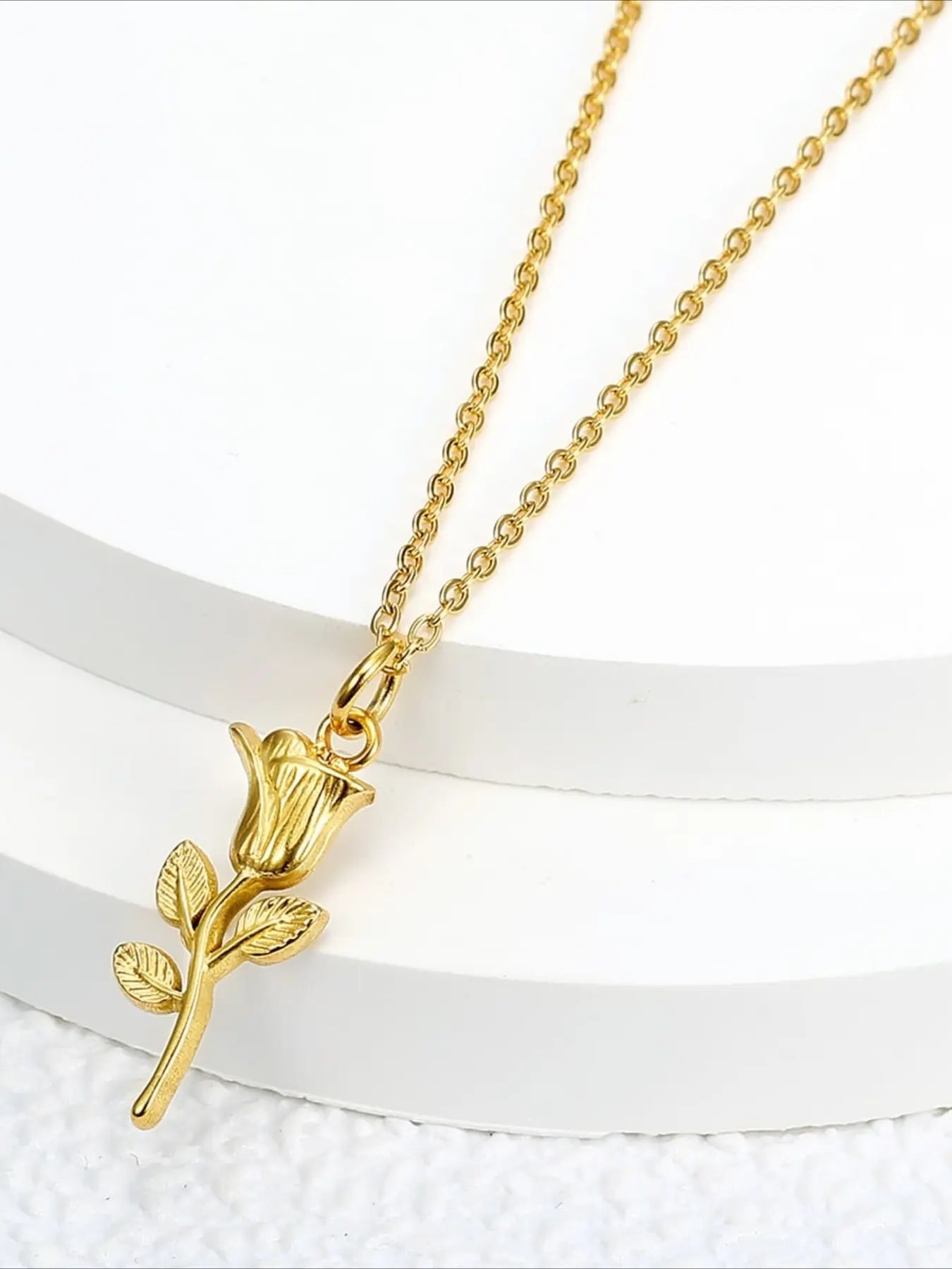 Exquisite Gold Rose Pendant Necklace with A High-end Feel, Stainless Steel That Does Not Fade, Fashionable and Versatile Daily Accessories