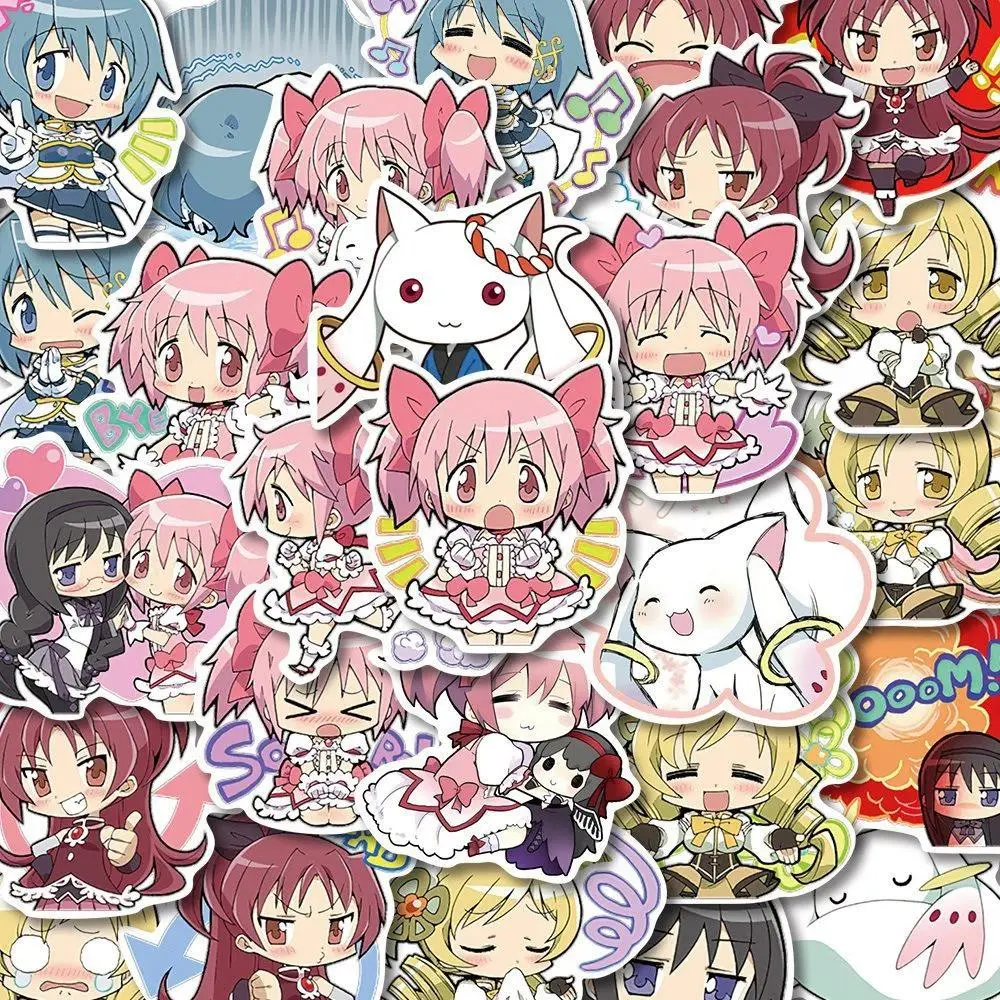 5. 48pcs Kawaii Anime Puella Magi Madoka Magica Stickers Kaname Madoka Akemi Homura Decals for Laptop Phone Cartoon sticker Girl