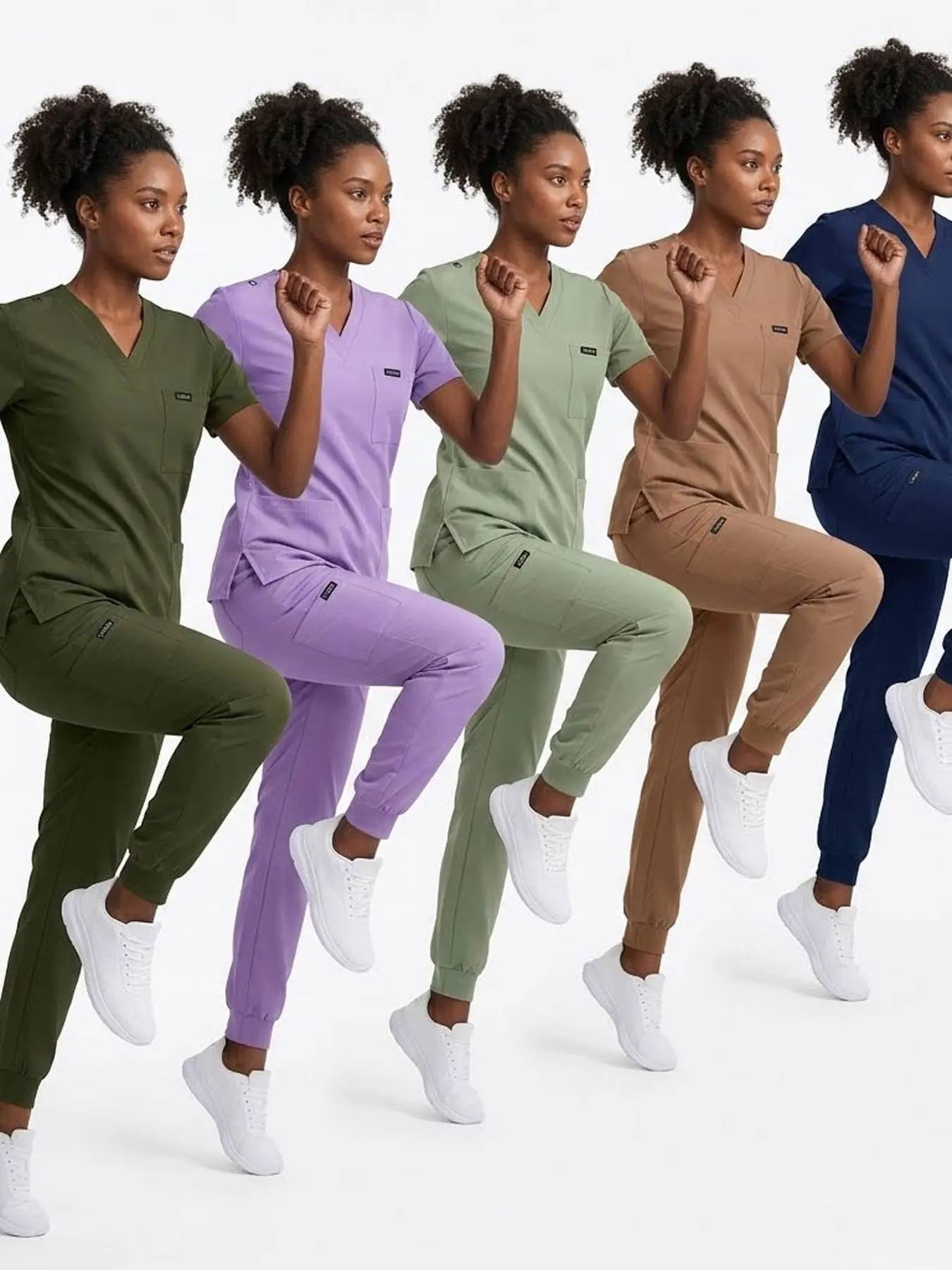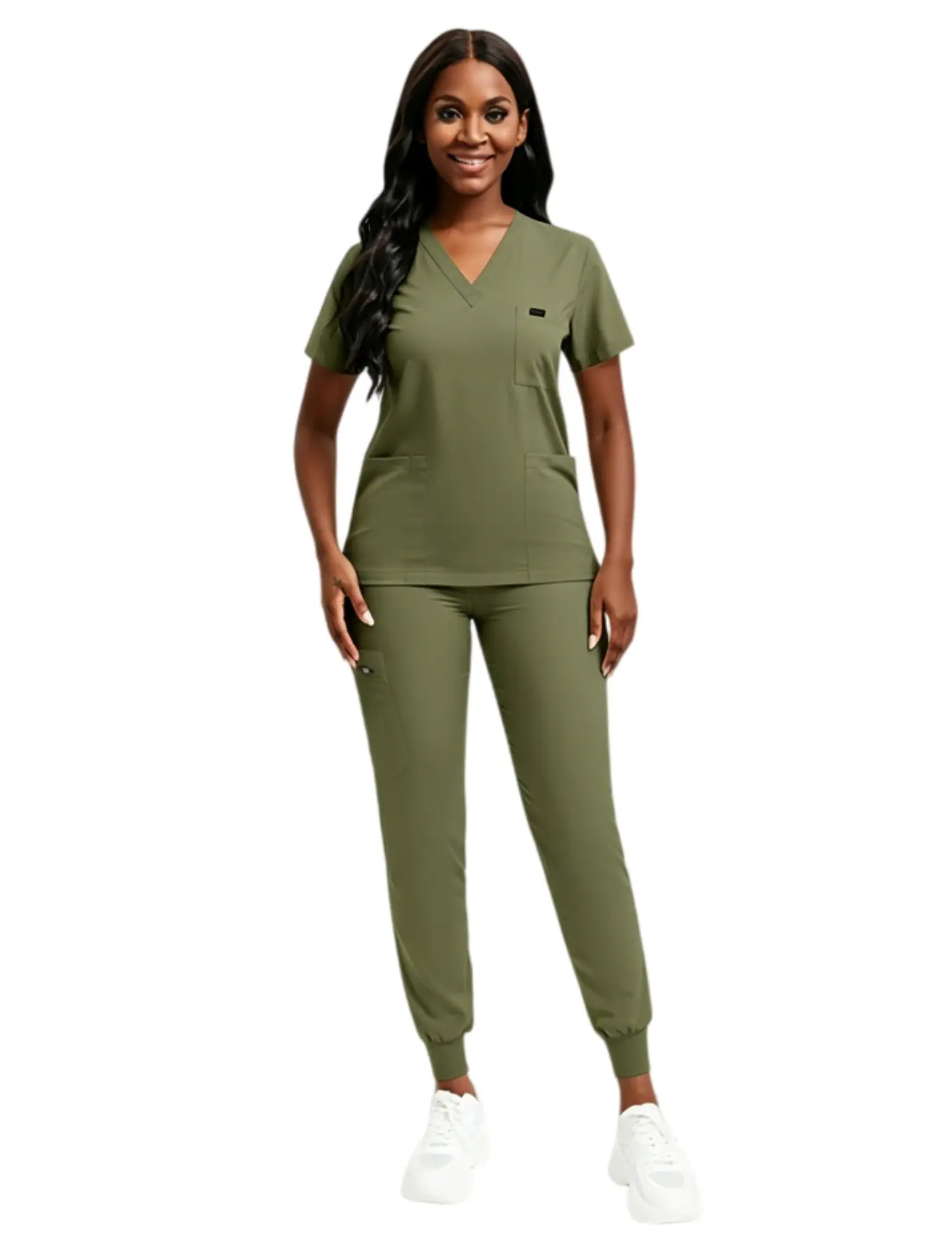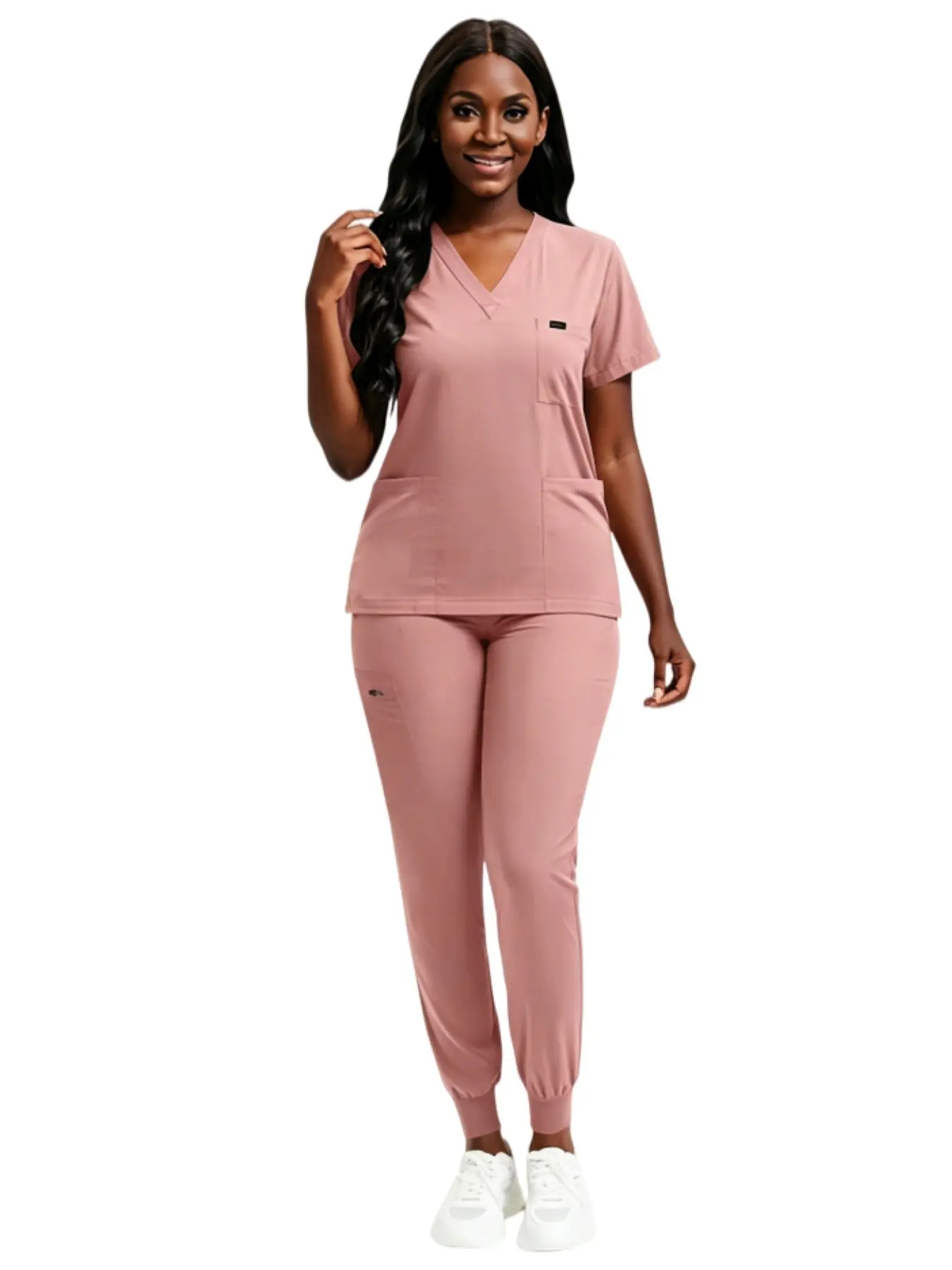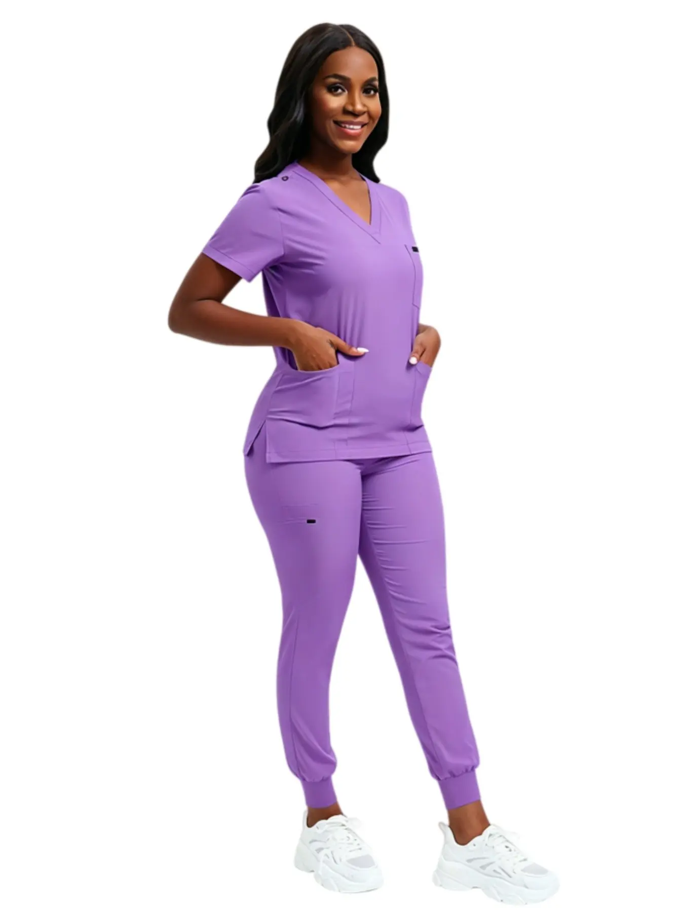Women's V-Neck Scrub Set, 2-Piece Stretch Uniform with Jogger Pants, Multi-Pocket Breathable Workwear for Nurses Doctors, Multiple Colors Available