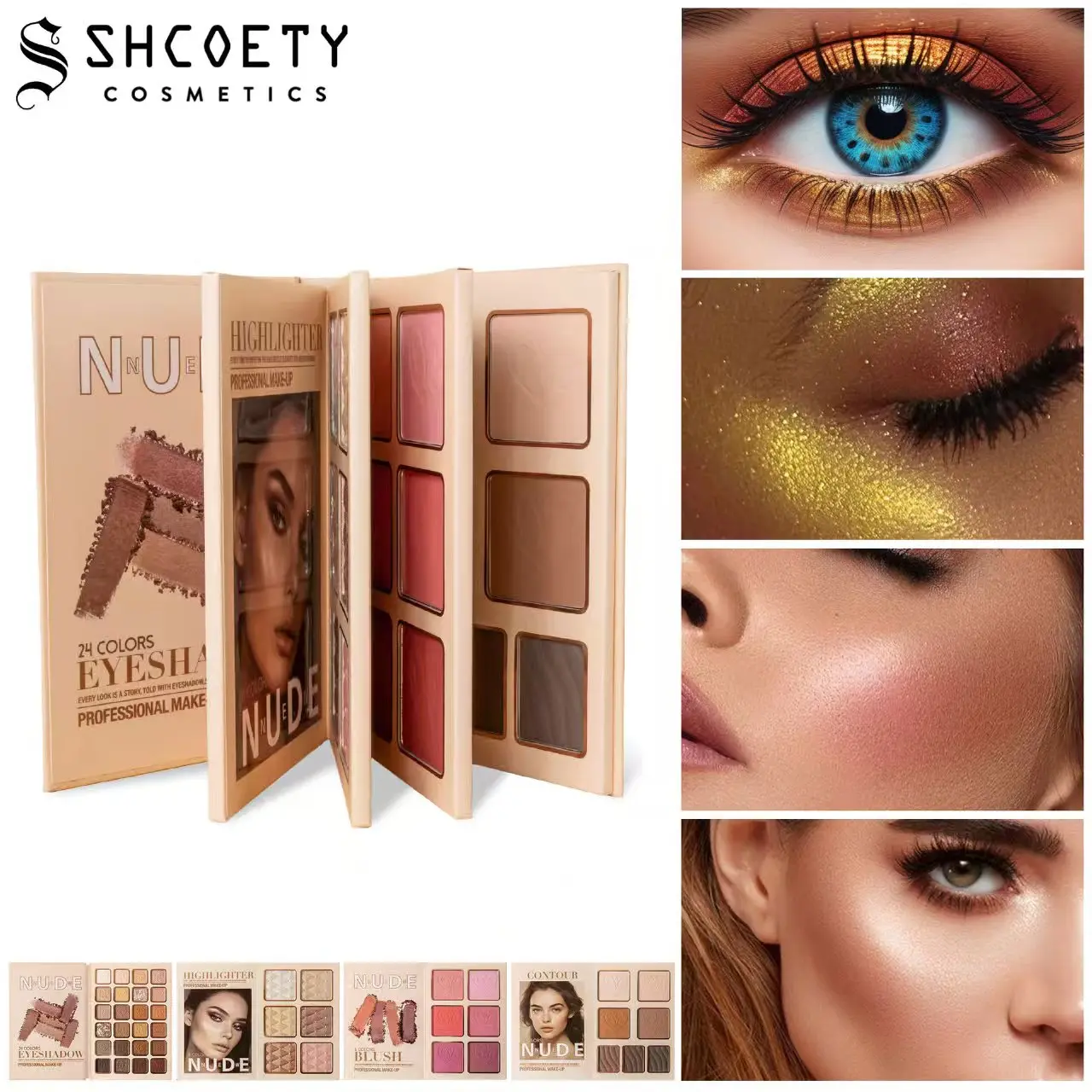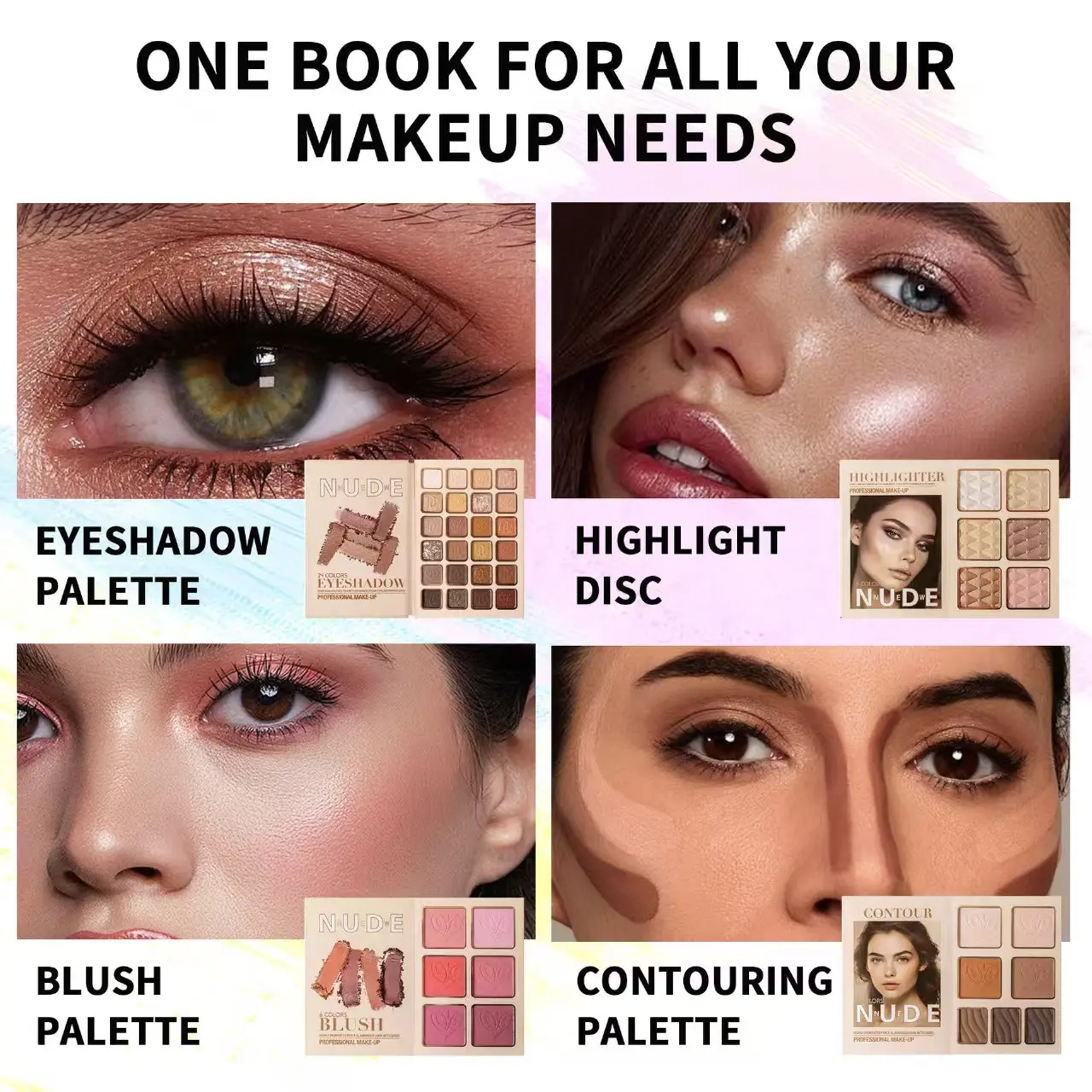 ·Eyeshadow, Blush, Contour, Highlighter: All-in-one for complete makeup.