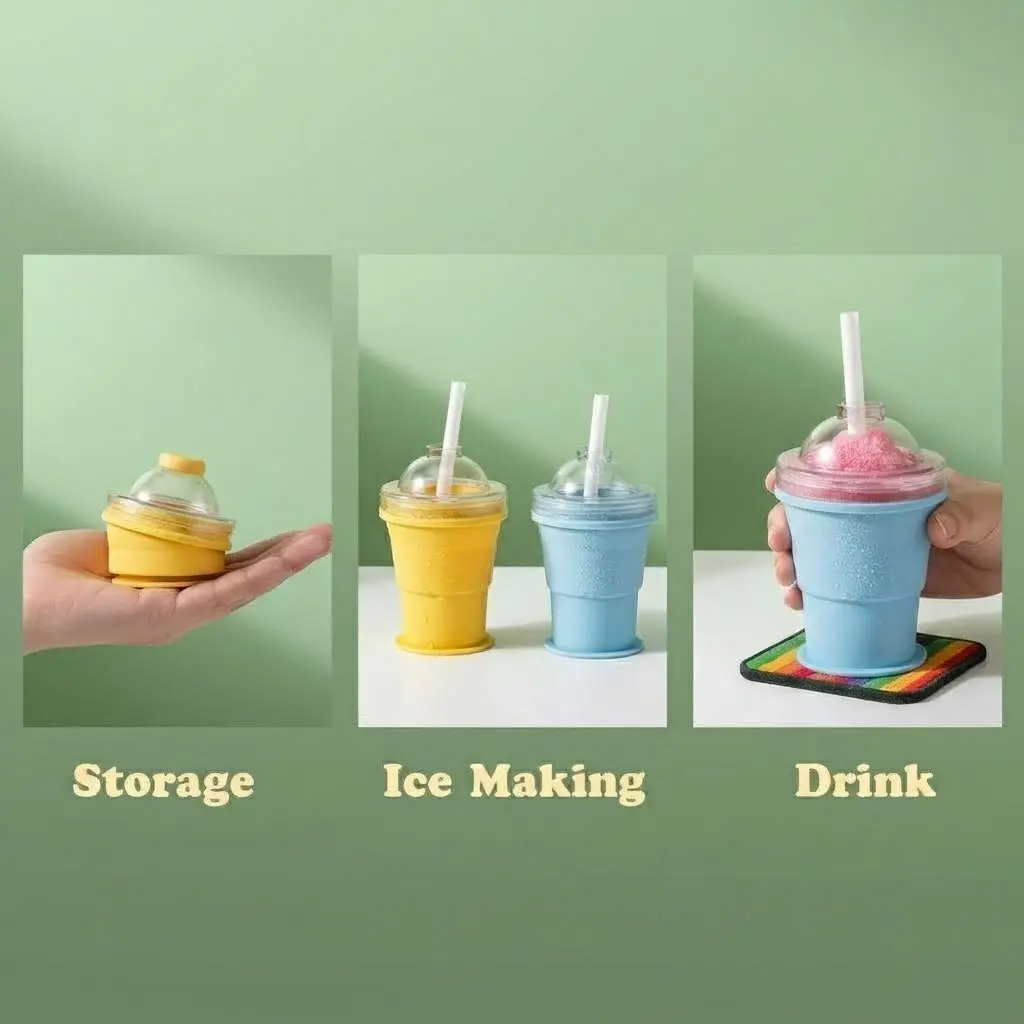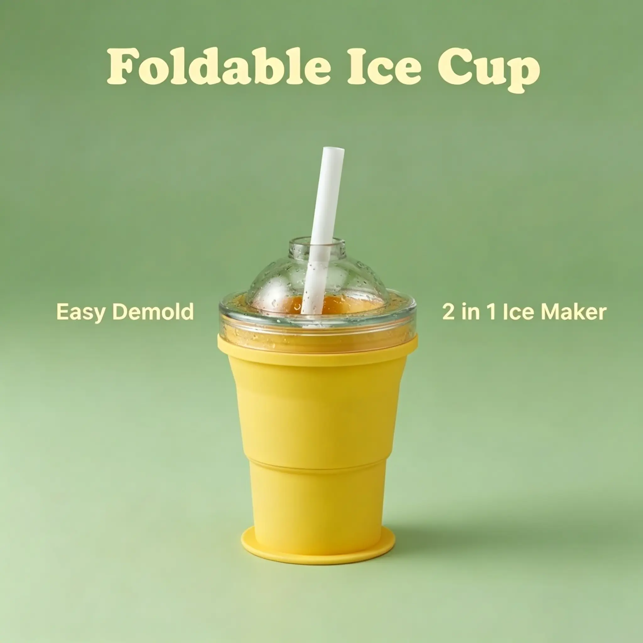 Foldable Ice Ball Cup with Straw Portable Silicone Ice Mold Summer New Design Convenient Handheld Cup Perfect for Outdoor Use BPA-Free Food-Grade Safe Materials Dual-Purpose Design Space-Saving Collapsible Structure - Bottles, Kitchen