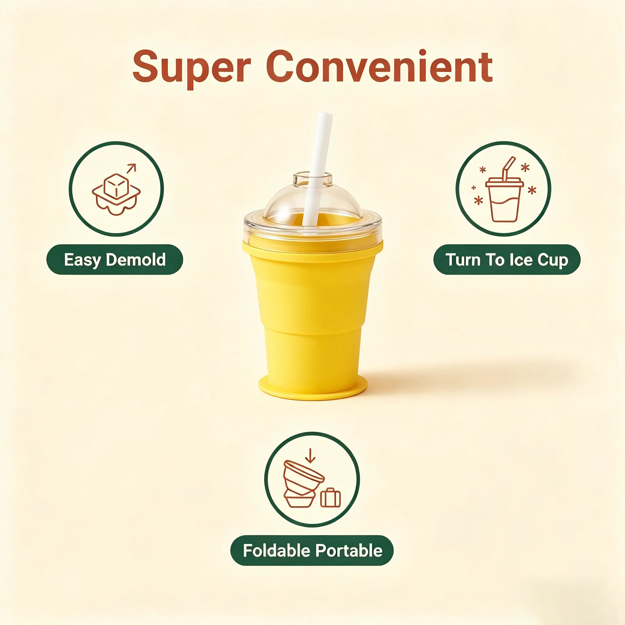 5. Foldable Ice Ball Cup with Straw Portable Silicone Ice Mold Summer New Design Convenient Handheld Cup Perfect for Outdoor Use BPA-Free Food-Grade Safe Materials Dual-Purpose Design Space-Saving Collapsible Structure - Bottles, Kitchen