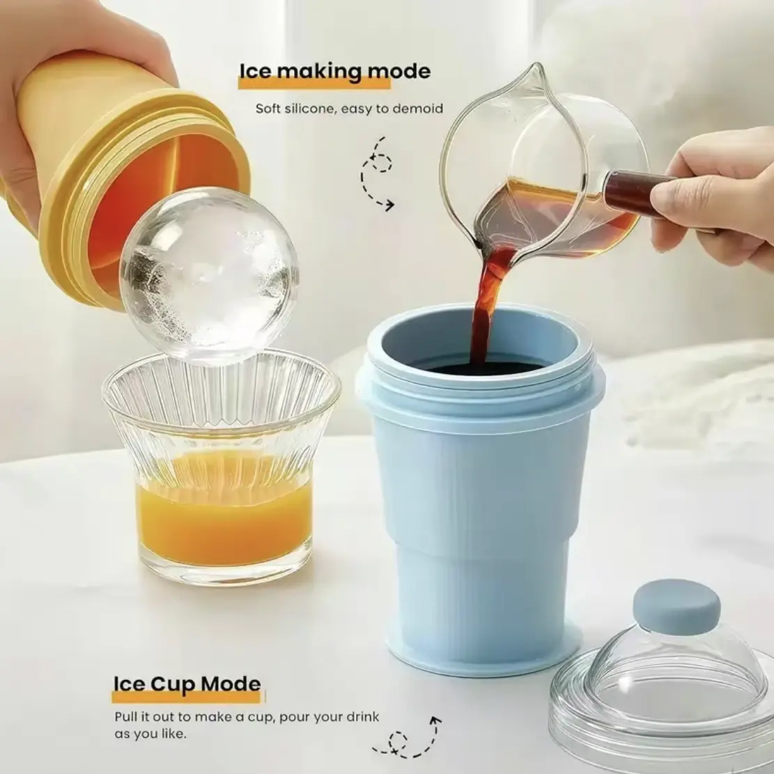 Dual-Purpose Design: Effortlessly freeze perfectly round ice balls for cocktails, smoothies, or cold drinks, then repurpose the mold as a leak-proof drinking cup—saving space and simplifying your routine.