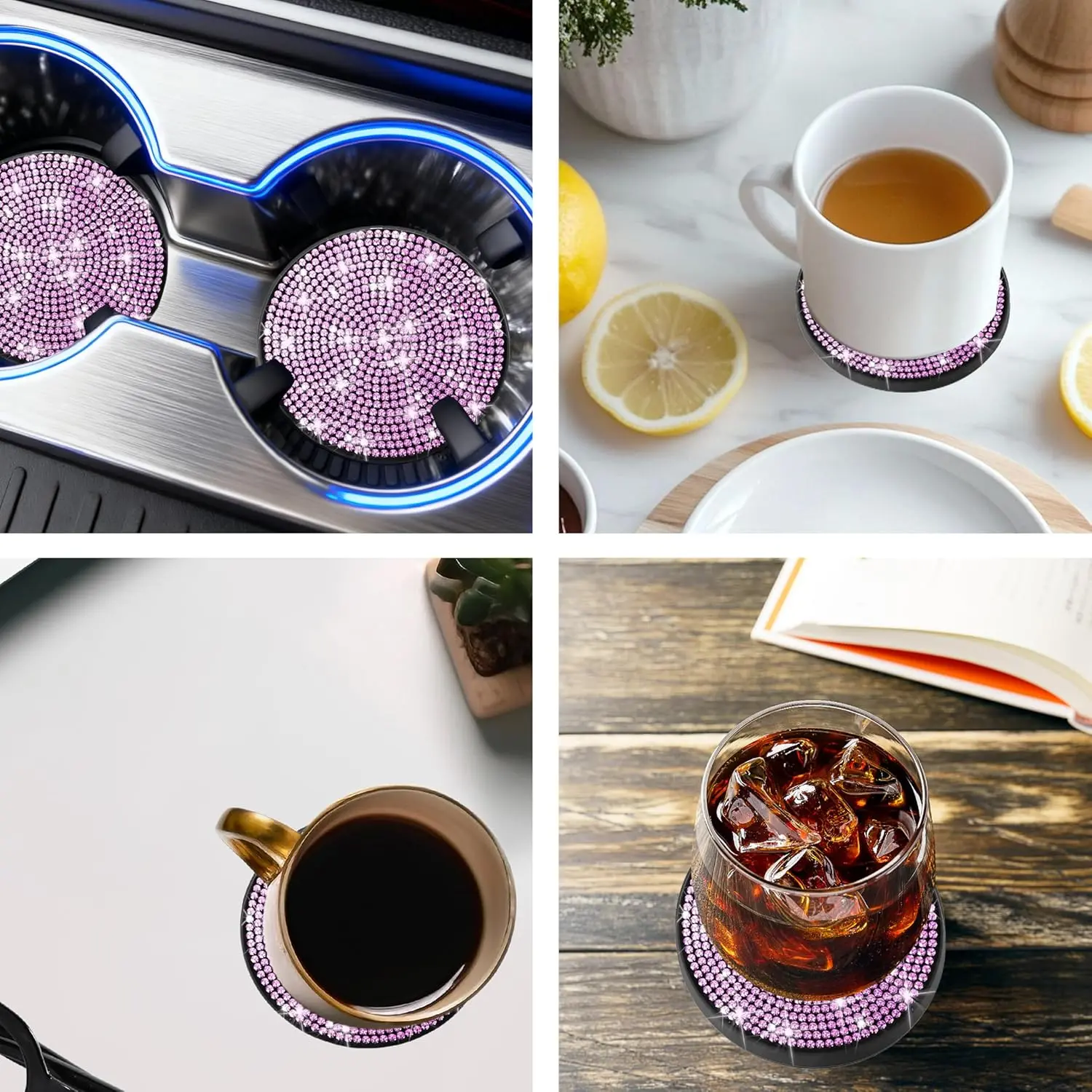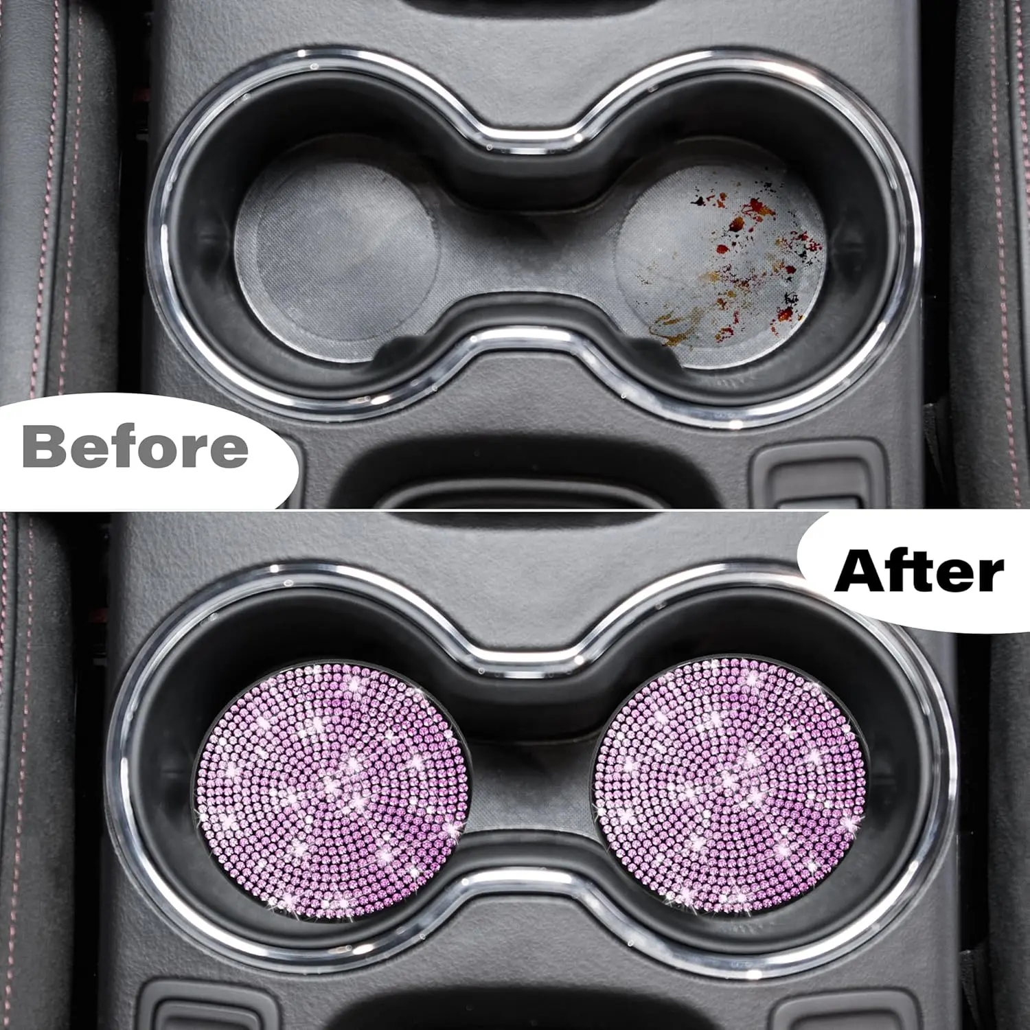 Protection for Cup & Holder:Non-slip cup holder coasters protect your mugs from bumps and scratches when traveling rough roads, new style also catches and holds spills, prevent condensation from escape, crumbs and other debris to keep your car clean Best Fit for Cup Holder:These bling interior accessories are light, measuring 2. 76 inches in diameter and 0. 2 inches thick, the recessed design can contain spilled liquids and is suitable for most cars. Please measure the size of the cup holder before purchase, to avoid the inconvenience Quality Material:These interior decoration organizations are made of high quality silicone, the material is soft, elastic, durable, not easy to deform, thick feel, inlaid with rhinestones, beautiful and aesthetic value Easy to Remove and Clean:Adopting embedded installation, just inserts the coaster into the cup holder. These car cup holder coasters set can easily wash in the water faucet to clean Perfect Gift:These automotive things make great gifts for family and friends with new cars, and the crystal rhinestone designs are the best interior accessories women must have