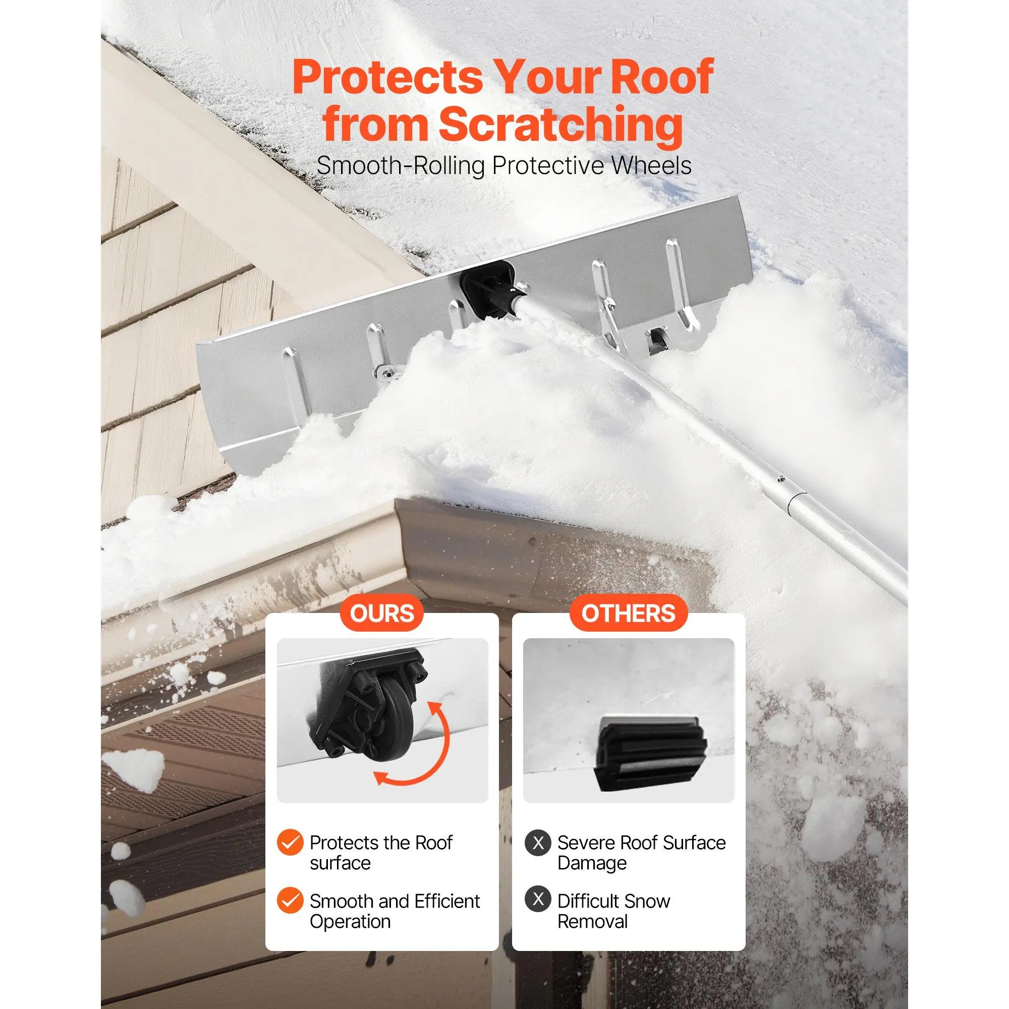 VEVOR Snow Roof Rake, 26 in Aluminum Blade, 7.5-20 ft Adjustable Roof Snow Scraper with Wheels, Anti-Slip Handle Snows Removal Tool, Lightweight House Rooftop Rake for Leaves Debris Removal