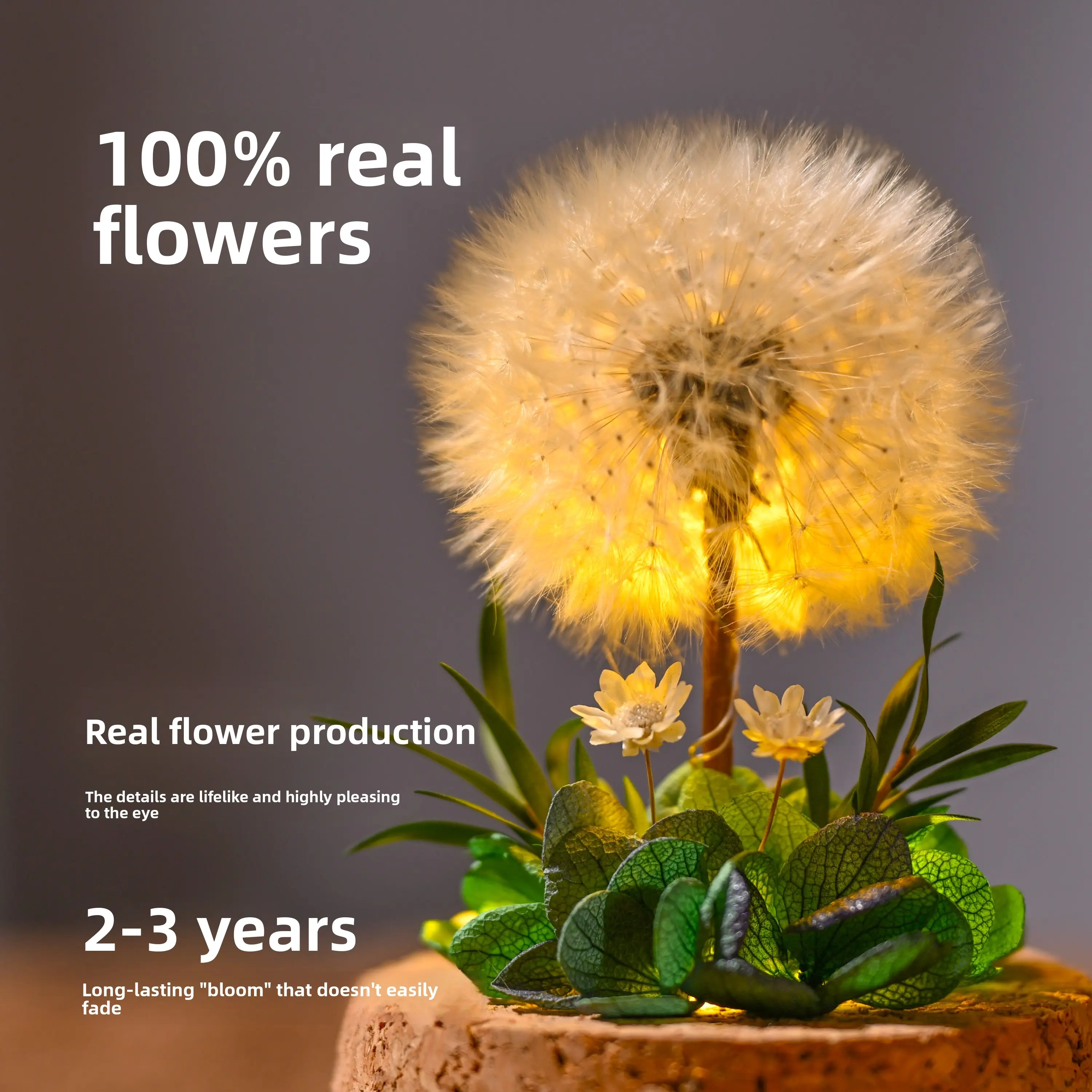 Light Up Dandelion in Glass Dome,Birthday Gifts,Flower Gifts for Women Girlfriends Wives Mothers Daughters Sons,Desk Decor Valentine's Day Mother's Day Christmas Thanksgiving Day,Yellow Leaf