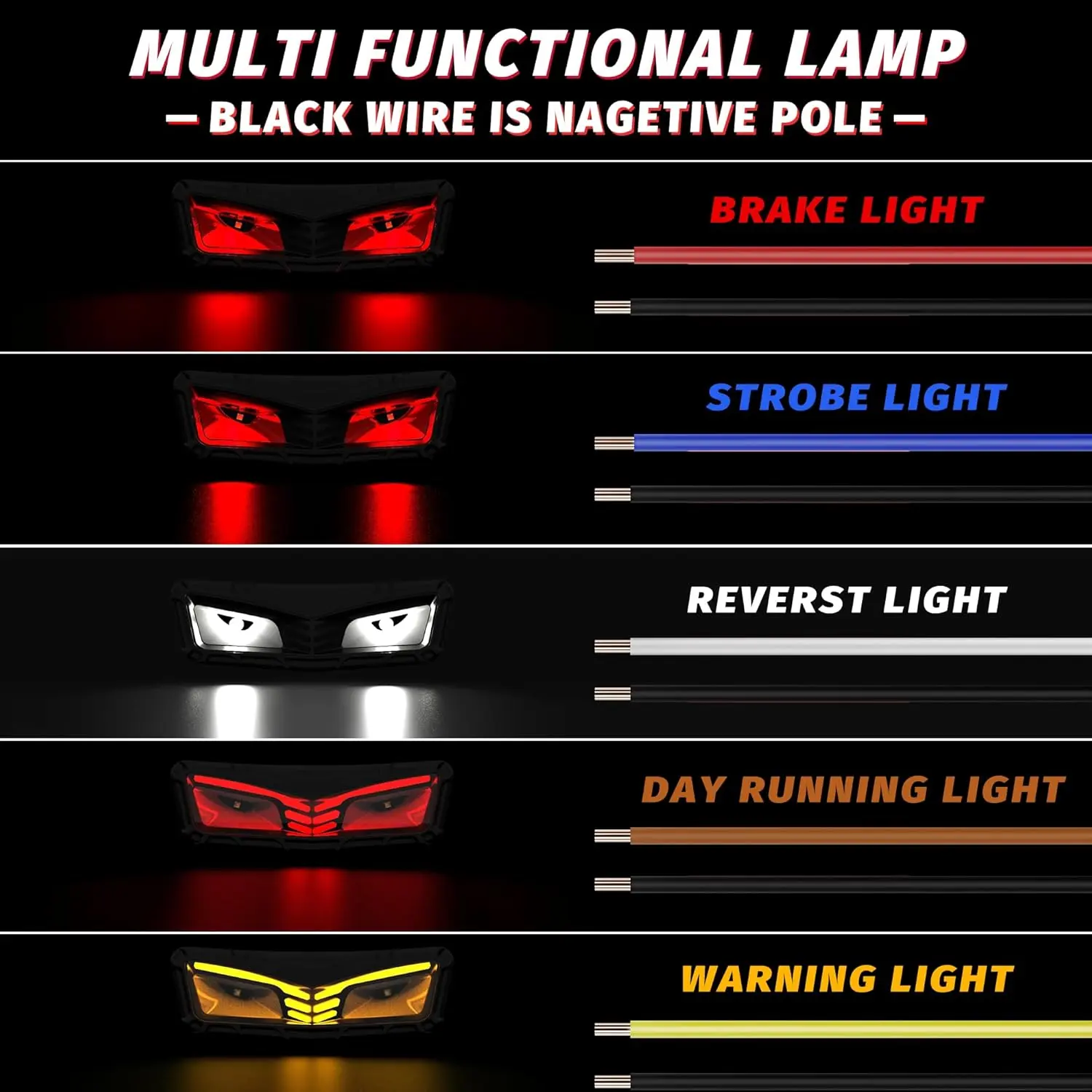 ·5-in-1 Integrated Design: This tail light combines brake lights, strobe lights, reverse lights, daytime running lights, and warning lights into one unified system. All functions are built into a single unit, offering greater practicality than traditional taillights.
