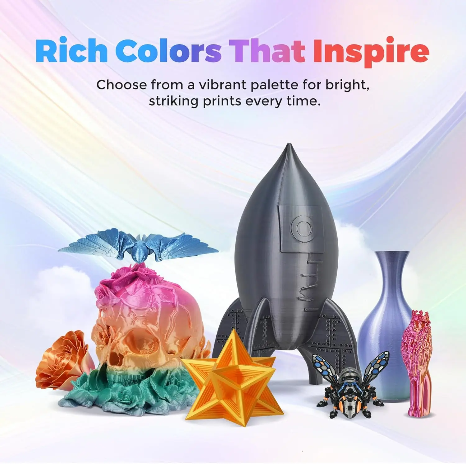 ·Vibrant Color Range: Available in a wide array of vivid colors, silk filament enhances the visual appeal of printed objects, making it perfect for creating striking artworks and decorative items.
