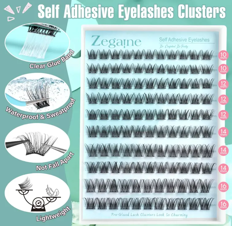 ·【Stronghold Natural Pre Glued Lash Clusters】Tired of dealing with messy lash glue? Zegaine’s self adhesive eyelashes clusters are the suitable solution—non-toxic, non-residue, and featuring an invisible glue band for a natural cat eye effect. Skip the morning makeup routine and enjoy extra sleep with Zegaine self adhesive lash clusters—who doesn’t love waking up effortlessly beautiful?