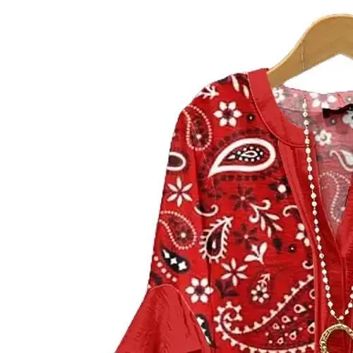 Contour Type:H TypeTop Length:MediumSize Type:Normal TypeHoliday/Occasion:CasualDesign:TexturedEmbellishment:TexturedFit:FittedStyle:Casual,Boho,Elegant,Sexy,Holiday,VintageSeason:All SeasonsSleeve Type:Ruffle SleeveSleeve length: 3/4 sleeveClothing Length:MediumNeckline:V-NeckOccasion:CasualQuantity Per Pack:10Region Of Origin:ChinaPattern:PaisleyMaterials:CottonCountry Of Origin:China