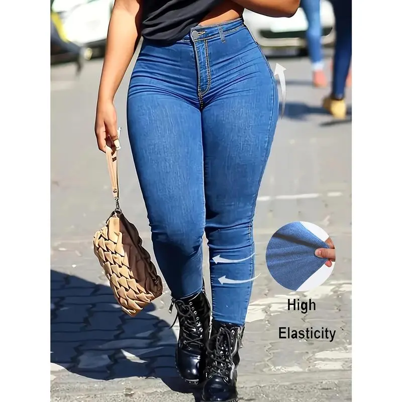 NewWomen's Classic Light Blue Skinny Jeans Mid Waist Zipper Design 80% Polyester 18% Viscose 2% Spandex Regular High Elasticity Casual Denim Pants Fit Womenswear