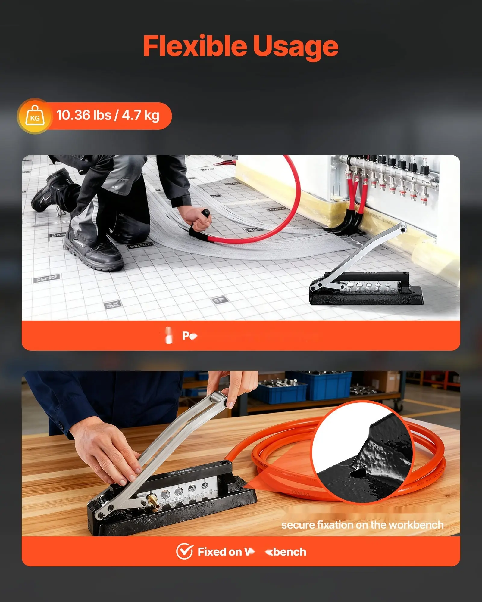 ·Portable Design: Lightweight and compact, this standard bench hose crimping tool is easy to store and transport. It also features mounting holes, allowing you to securely fix it to a workbench for stable and more precise operation