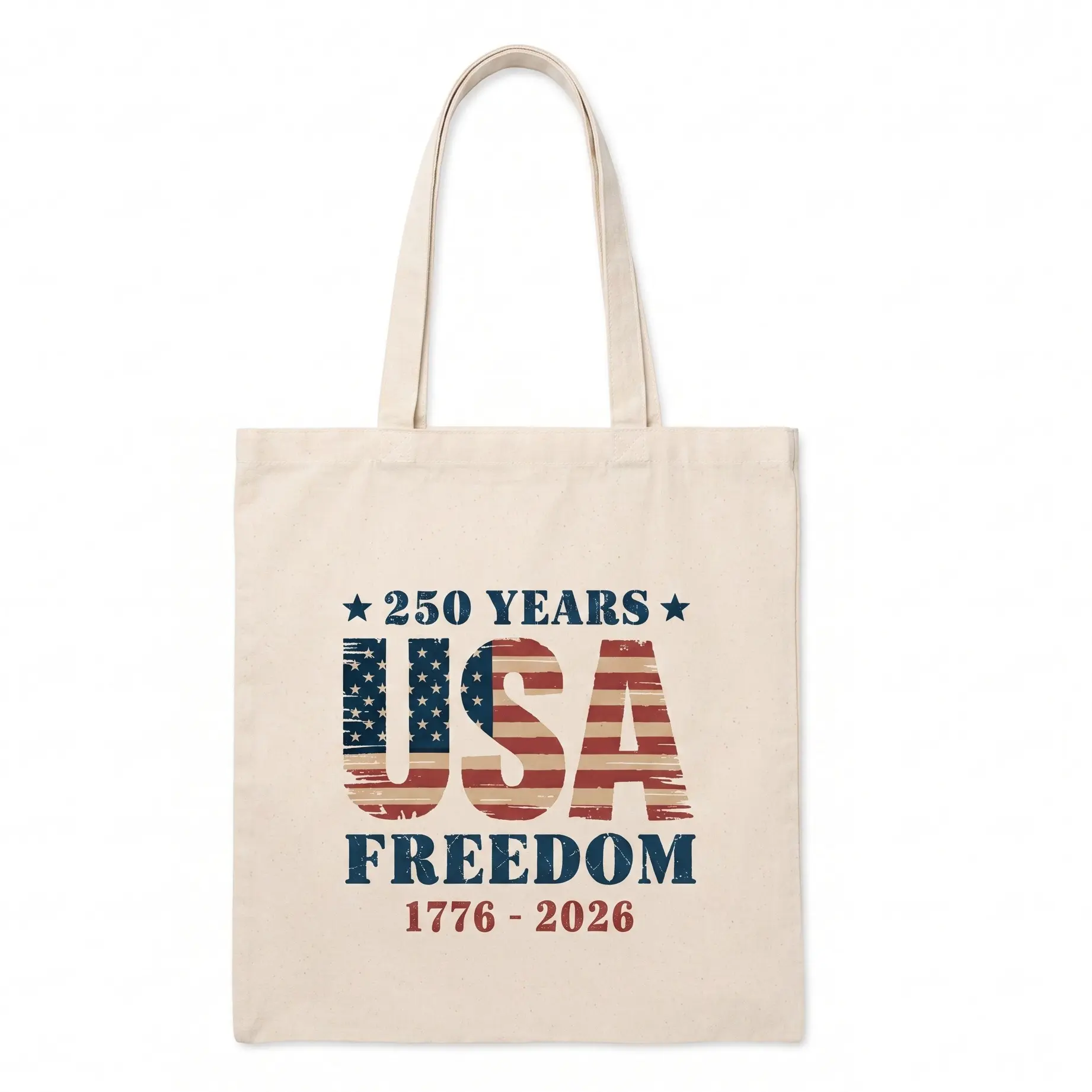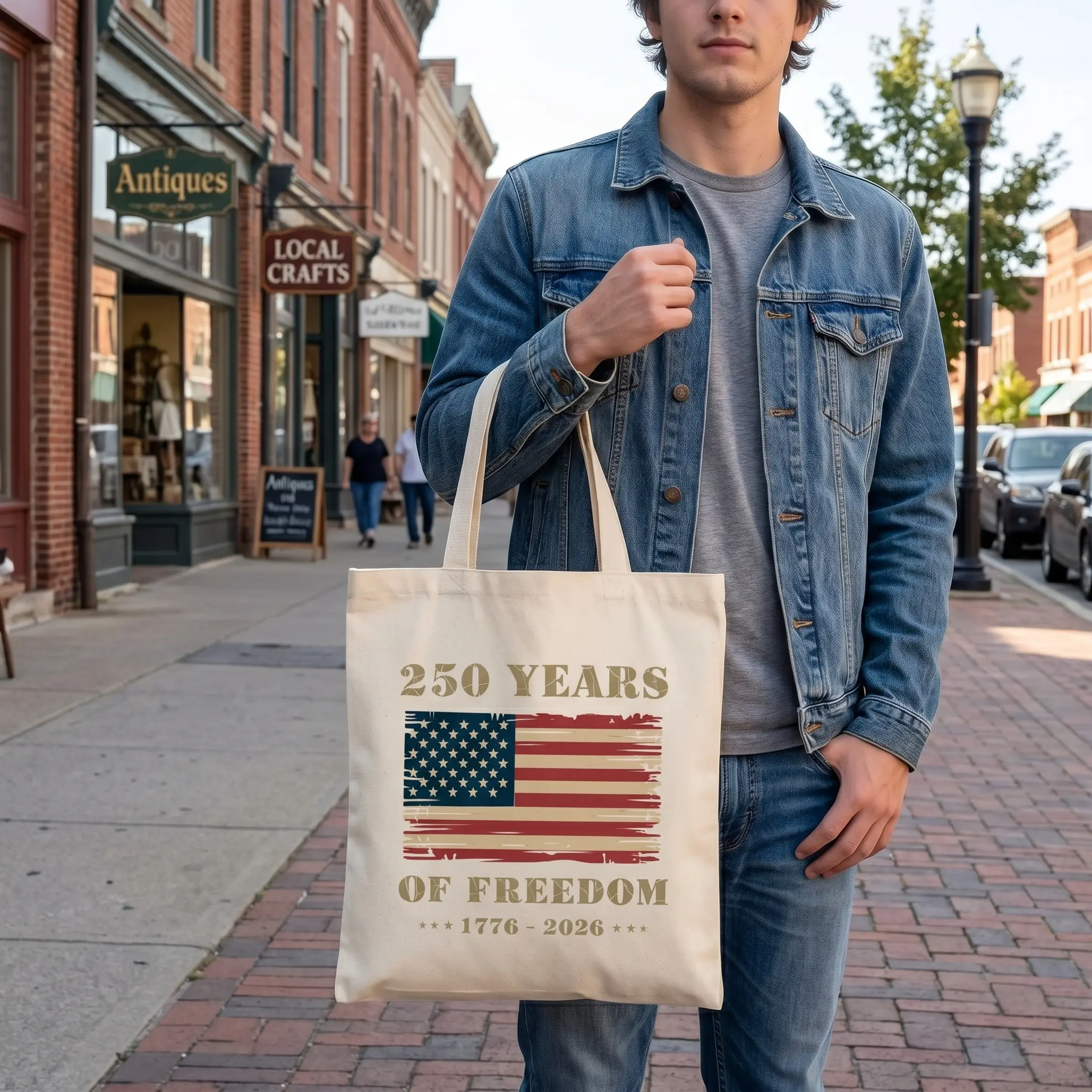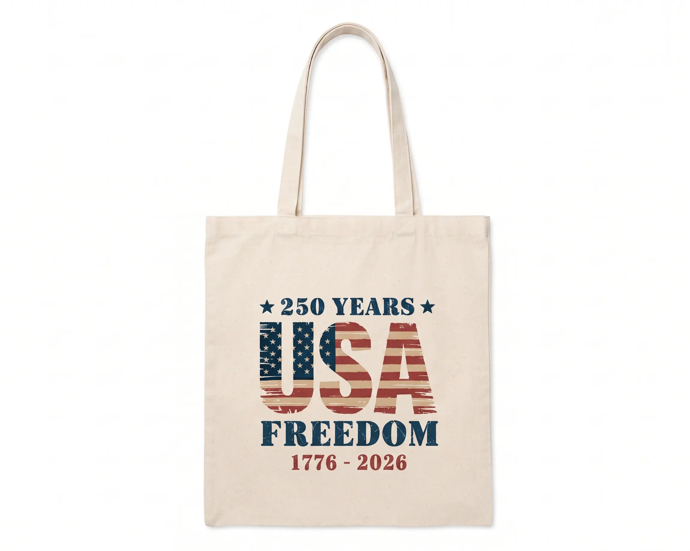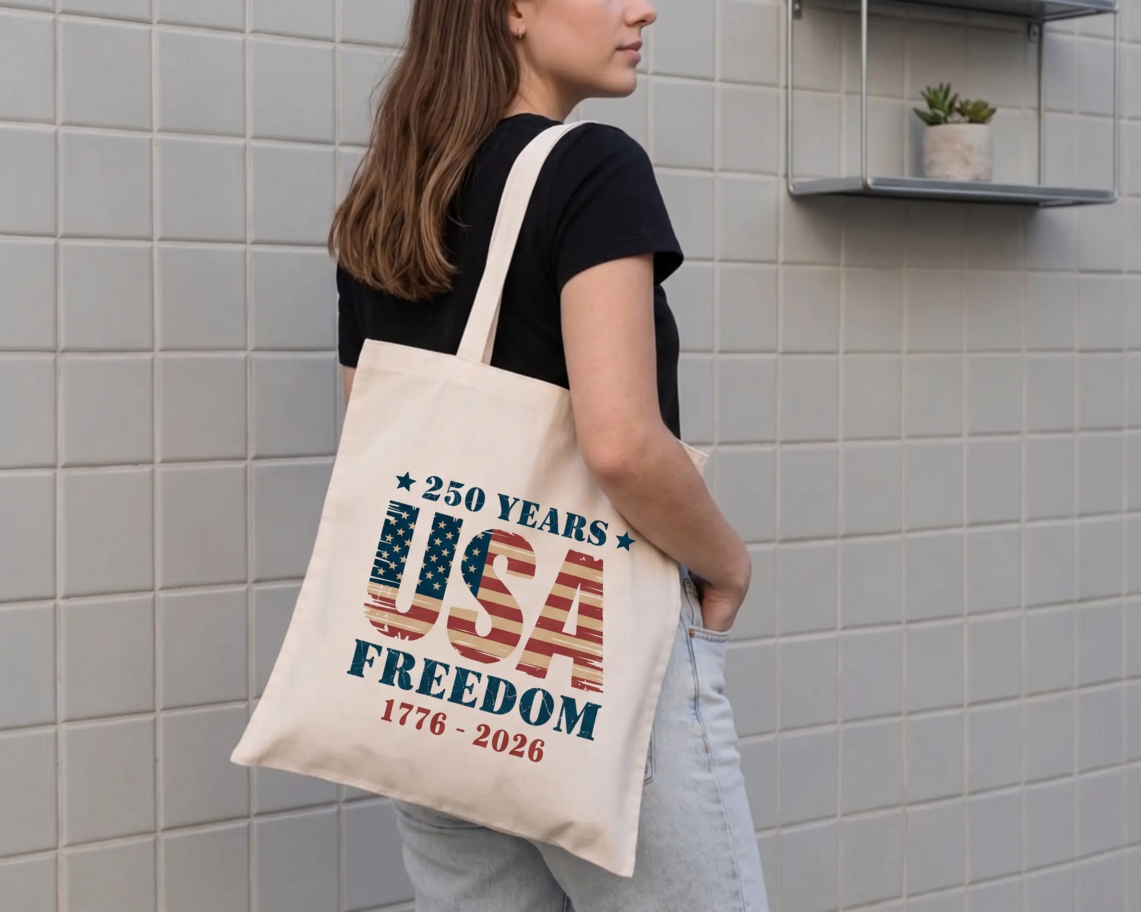 250 Years USA Freedom Tote Bag, Patriotic American Flag Canvas Tote, 1776–2026 Anniversary Bag, Vintage Independence Day Tote, Gift for Her or Him