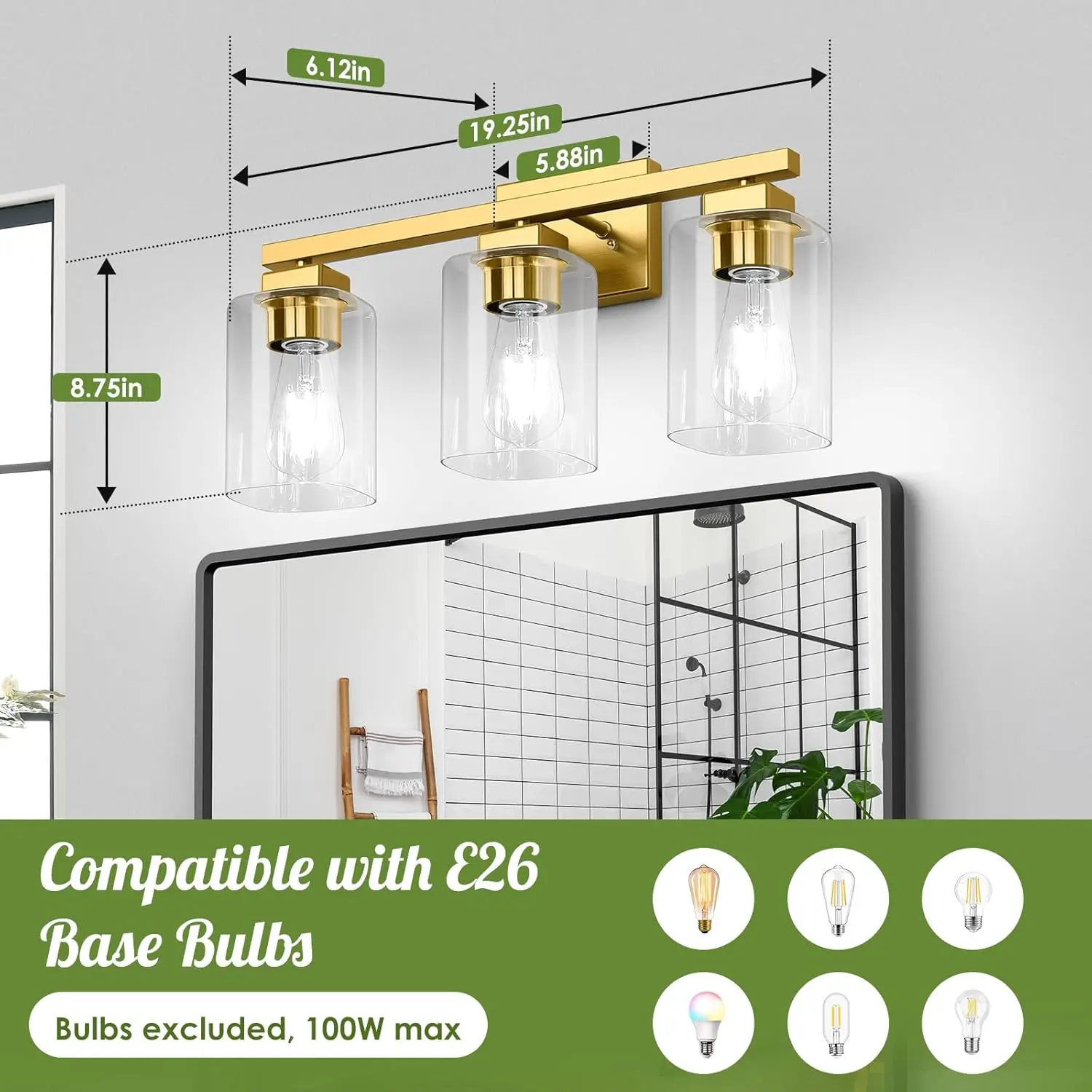 ·🛠️ Built to last, this gold bathroom light boasts a robust all-metal construction. Reinforced metal holding rings ensure stability. The sturdy lamp pole prevents bending or misalignment. Durable glass shades are securely held for safety. Perfect for bathrooms, living rooms, bedrooms, and hallways.