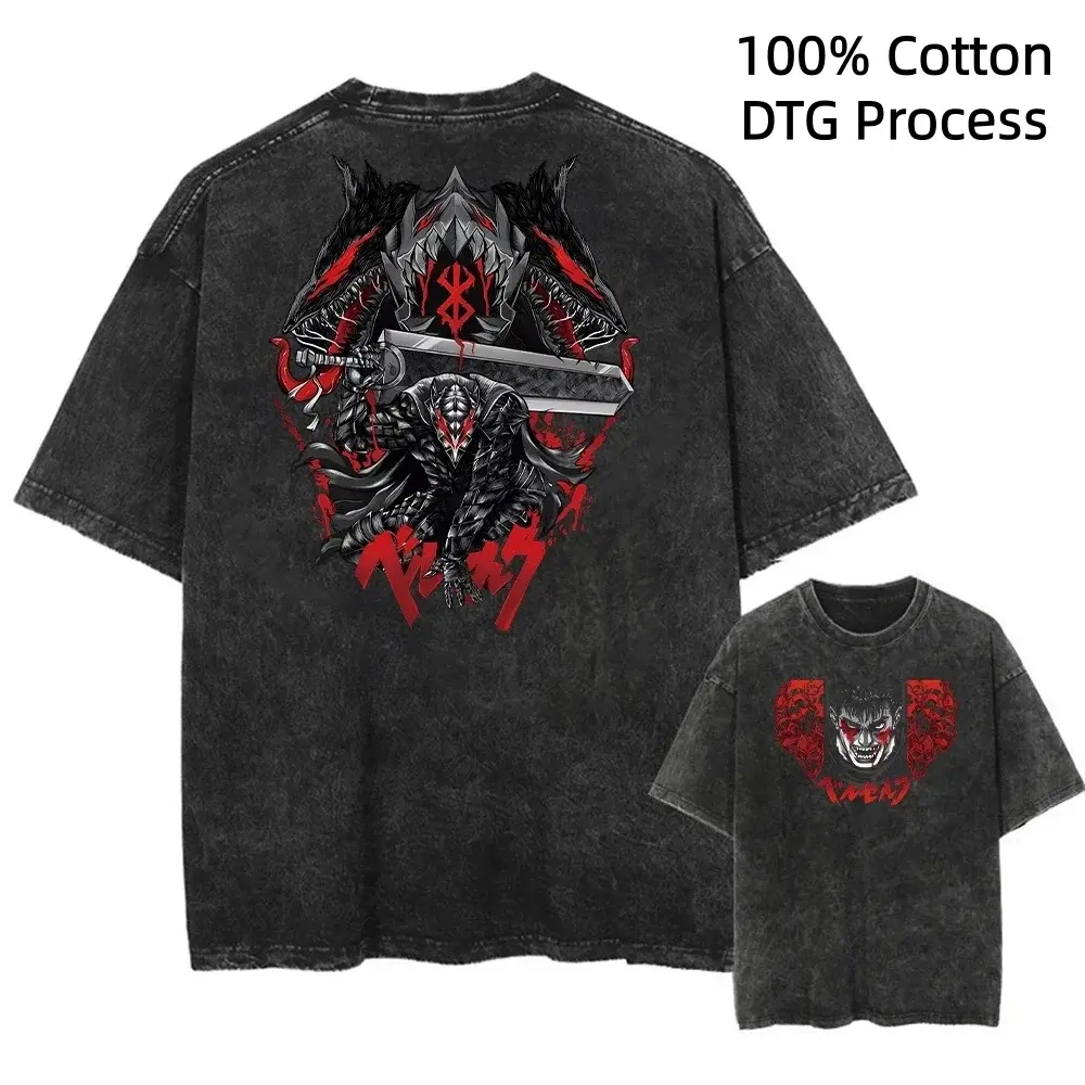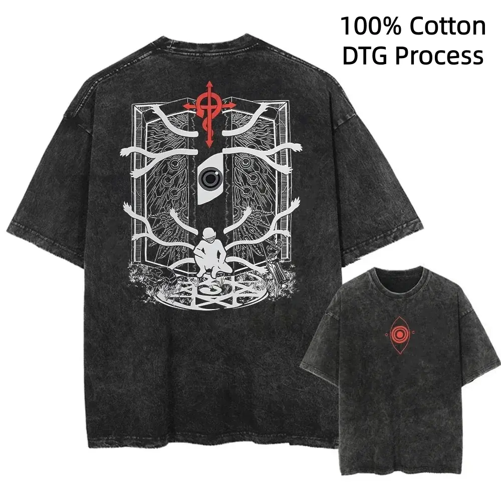 Japanese Anime Graphic Print Washed Short Sleeved Round Neck Y2k Tshirt  DTG Process Unisex Loose-Fitting T-shirt, Washed Casual Top (100% Cotton, 280g), Smooth Fabric, Minimalist Style, Street Style, Classic T-shirt, Makes a Great Gift.