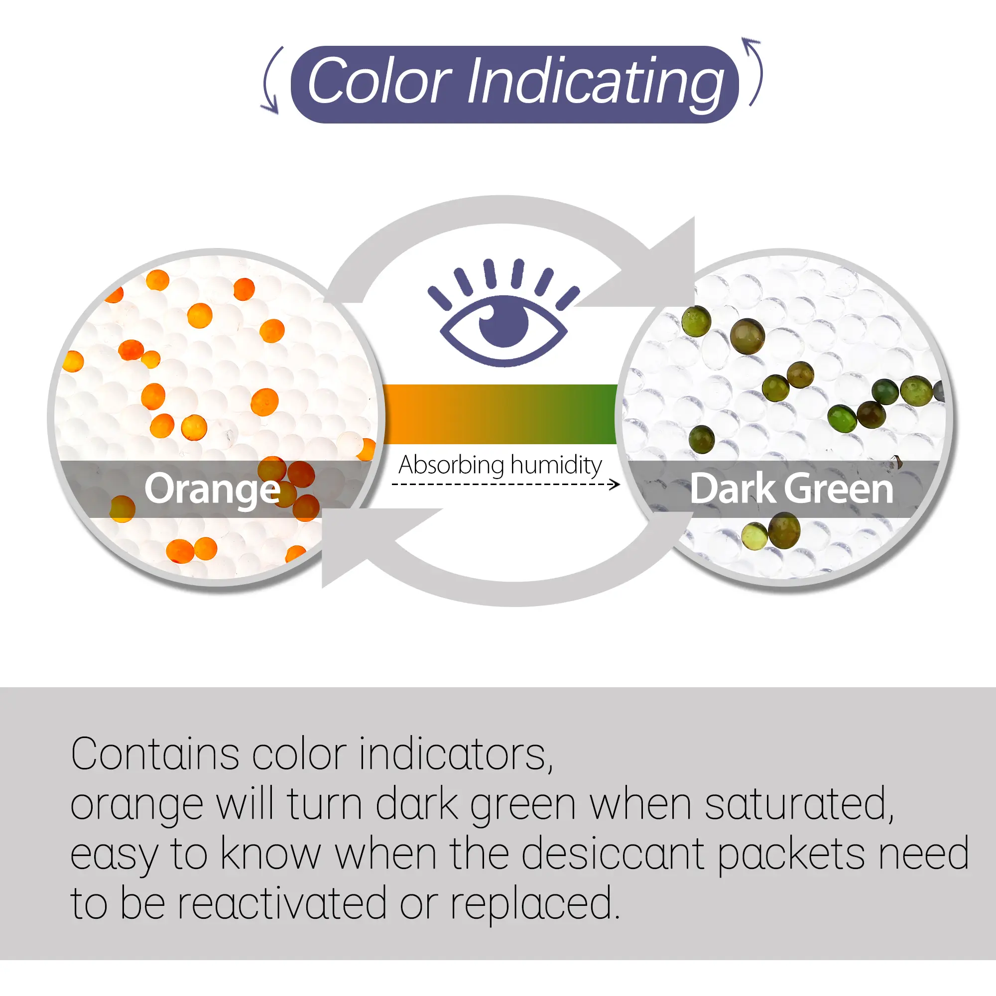 2. No change in size or shape even if the silica beads become saturated with moisture. The beads will continue to feel and look dry.