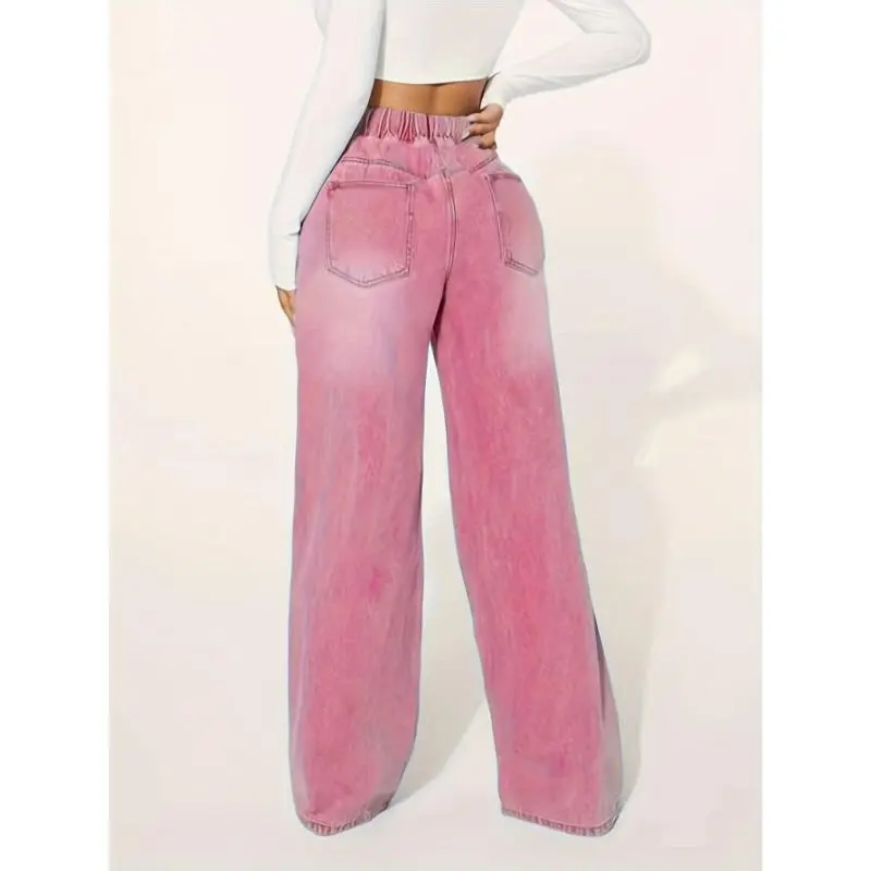 NewWomen's Jeans Chic Womens Blue Drawstring Jeans - Comfort Elastic Waist, Relaxed Baggy Style, Distressed Washed Wide Legs - Premium Denim Clothing