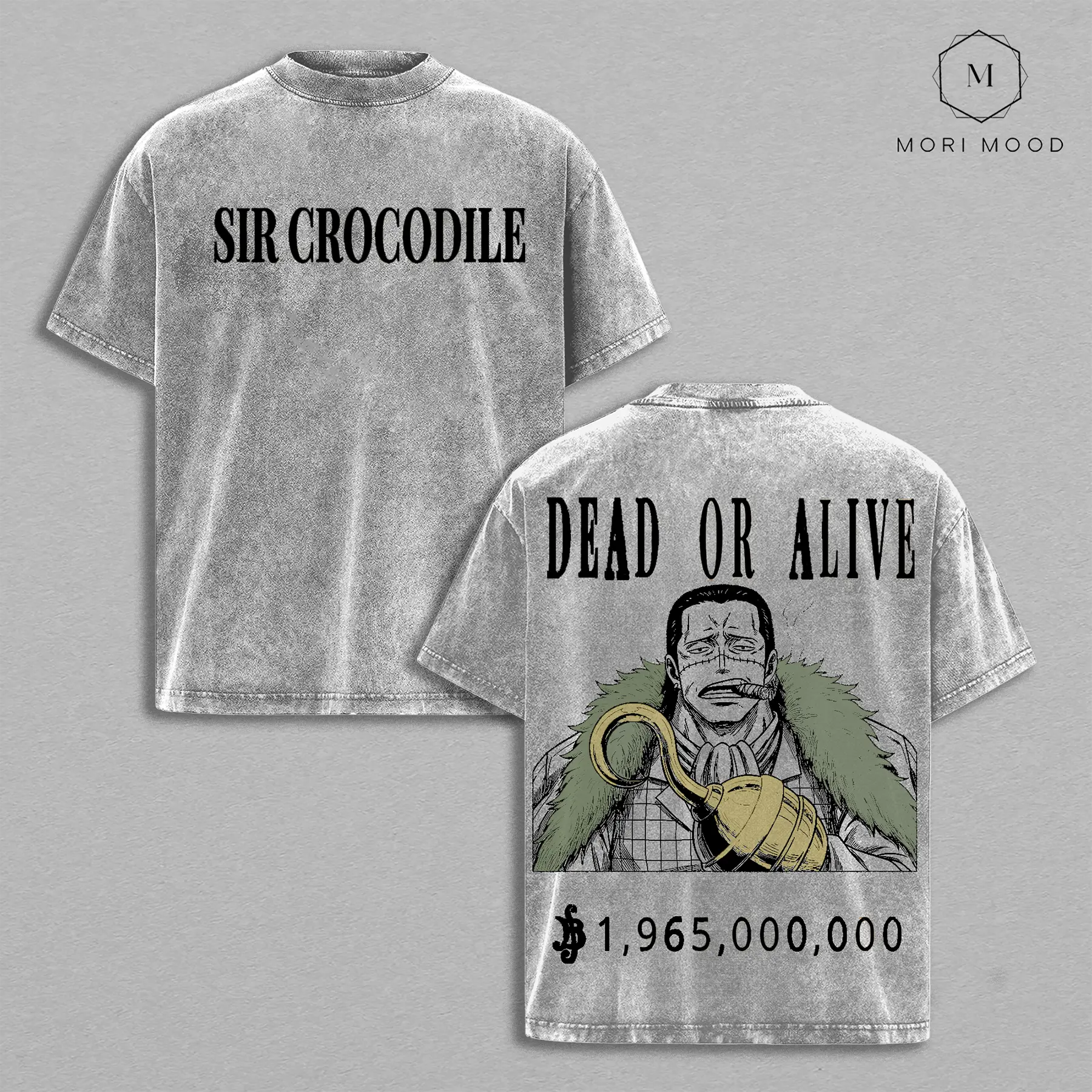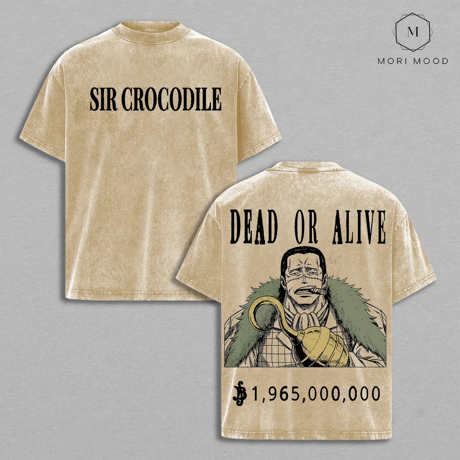 Crocodile Shichibukai - Alabasta Arc One Piece Alabasta Washed Tee Oversize Anime T-Shirt, OP Double Print Vintage Washed Graphic Tee, Heavyweight Cotton Streetwear, Pirate Manga Aesthetic Y2K Otaku Menswear, Anime Apparel