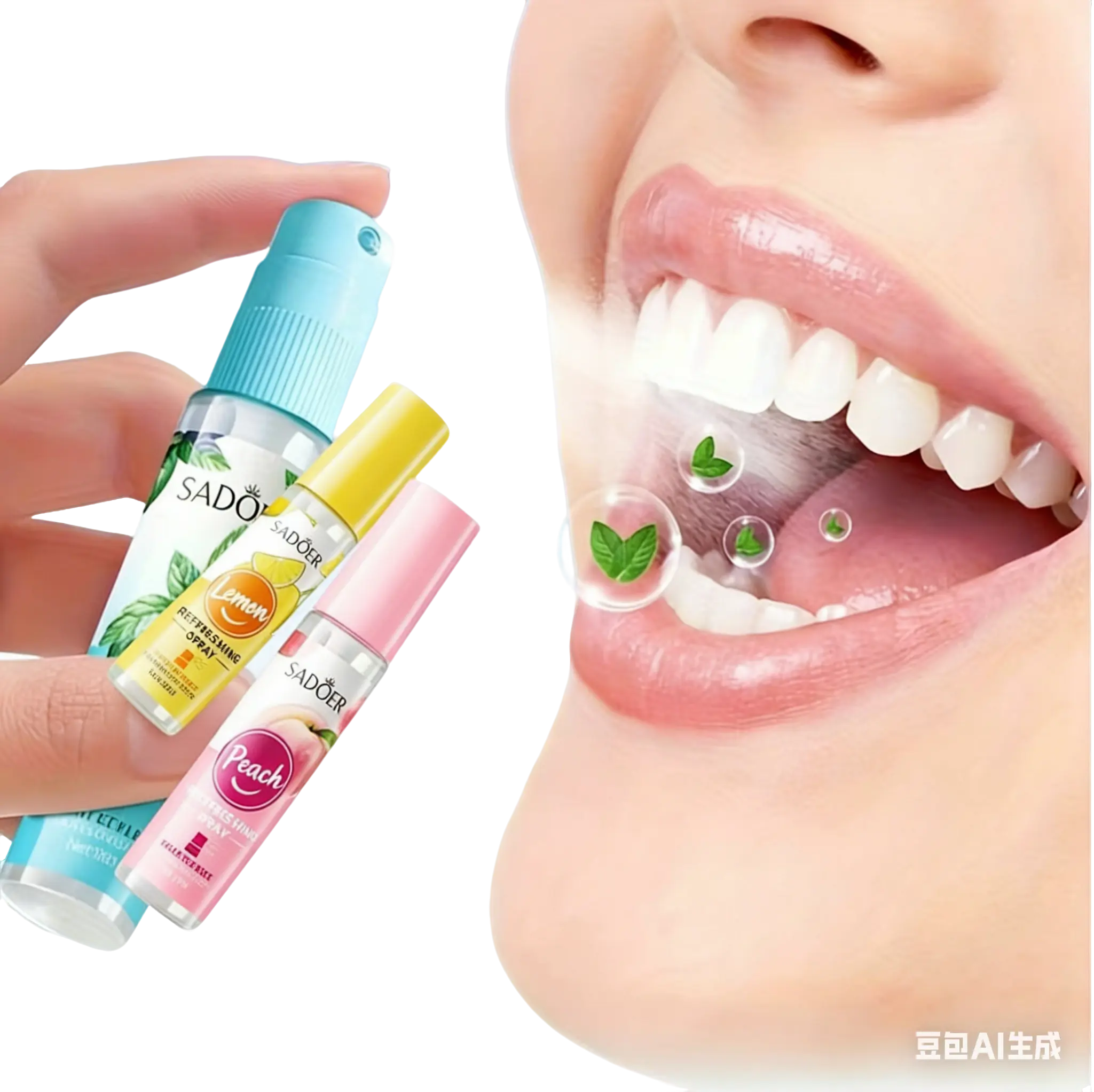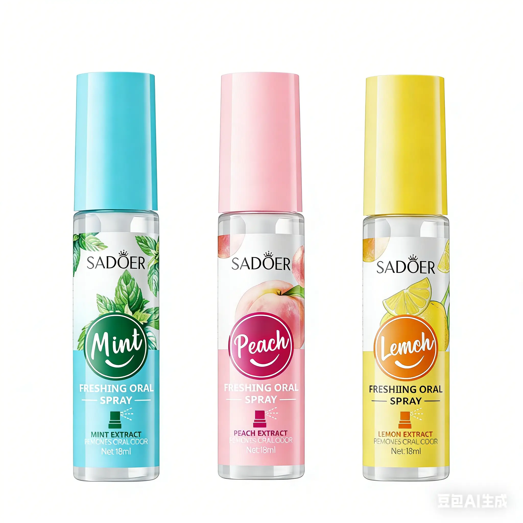 Product Overview SADOER offers 3 pcs Breath Spray. These alcohol-free oral fresheners provide long-lasting fresh breath. Available in mint, lemon, and peach flavors, they are perfect for travel, parties, and everyday use. Their compact design makes them pocket-sized and portable, ideal as romantic gifts for couples. Key Features Alcohol-Free: Ensures fresh, refreshing breath. Flavor options: choose from mint, lemon, or peach. Portable size: compact design for ease. Versatile Use: Suitable for travel, parties, and everyday use. Romantic Gift: Perfect for couples. Product Details Quantity: 3 pieces Volume: 0.61 oz per bottle Flavors: Mint, lemon, peach. Use: travel, parties, everyday use.