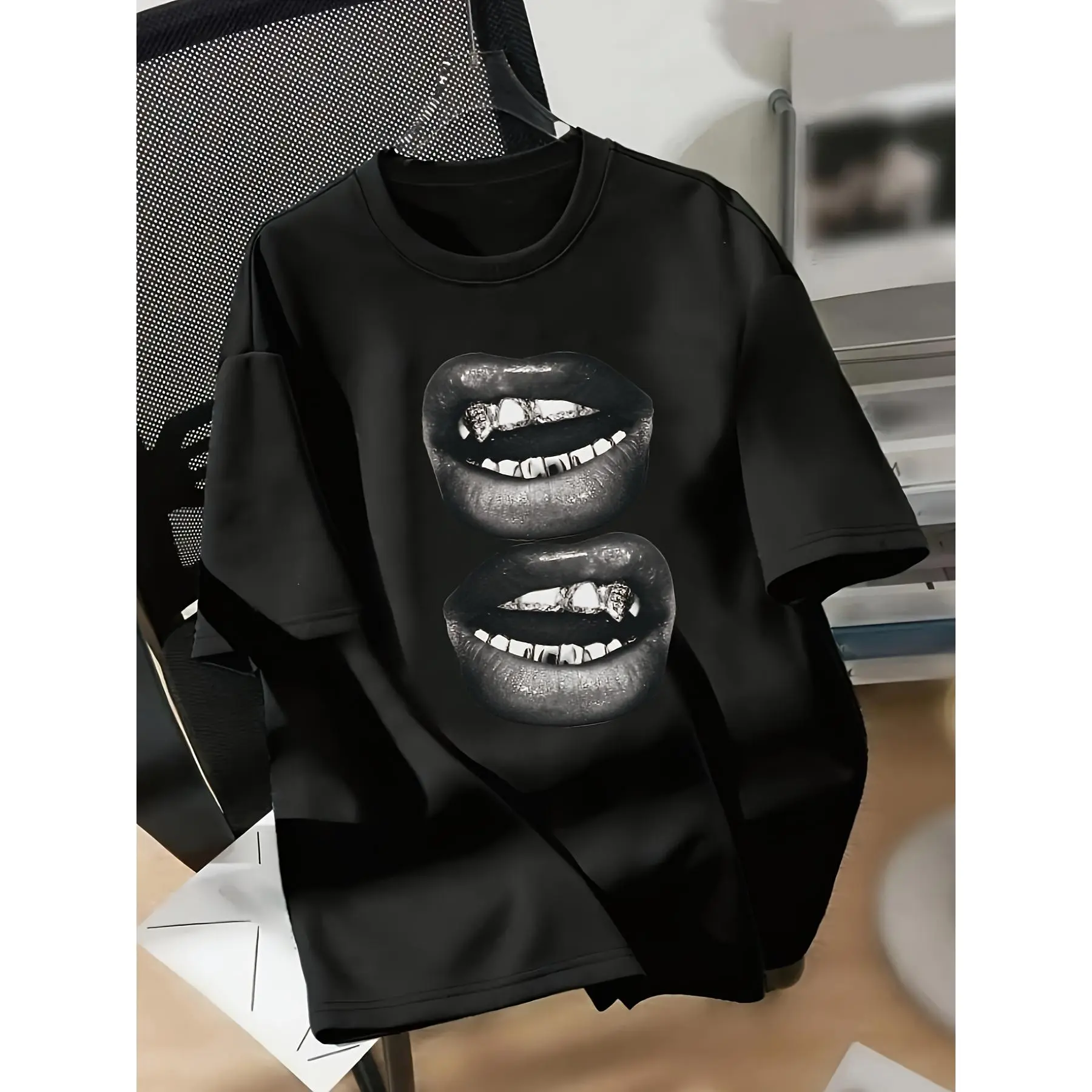 Hip Hop Streetwear Men's T-Shirt 180g Pure Cotton Casual Grillz Lips Graphic Print Tee Cool Rap Culture Top for Summer Club Party S-5XL