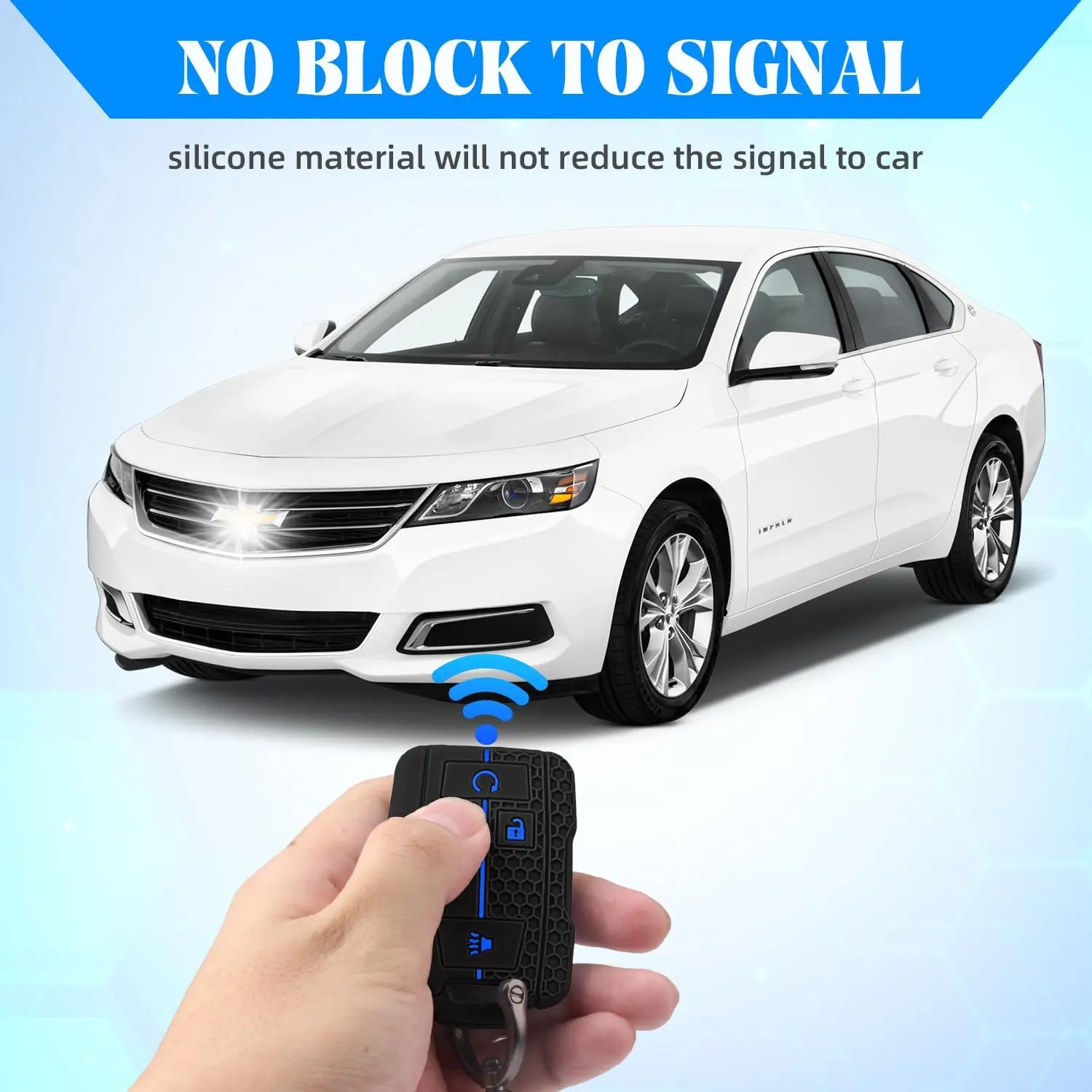 Premium Material: The for Chevy key fob cover is crafted from 100% eco-friendly pure silicone.Its thin, soft design fits like a glove while maintaining resistance to deformation when stretched.With exceptional wear resistance, it provides complete protection against bumps and scratches for your car key, without interfering with the button signal functionality