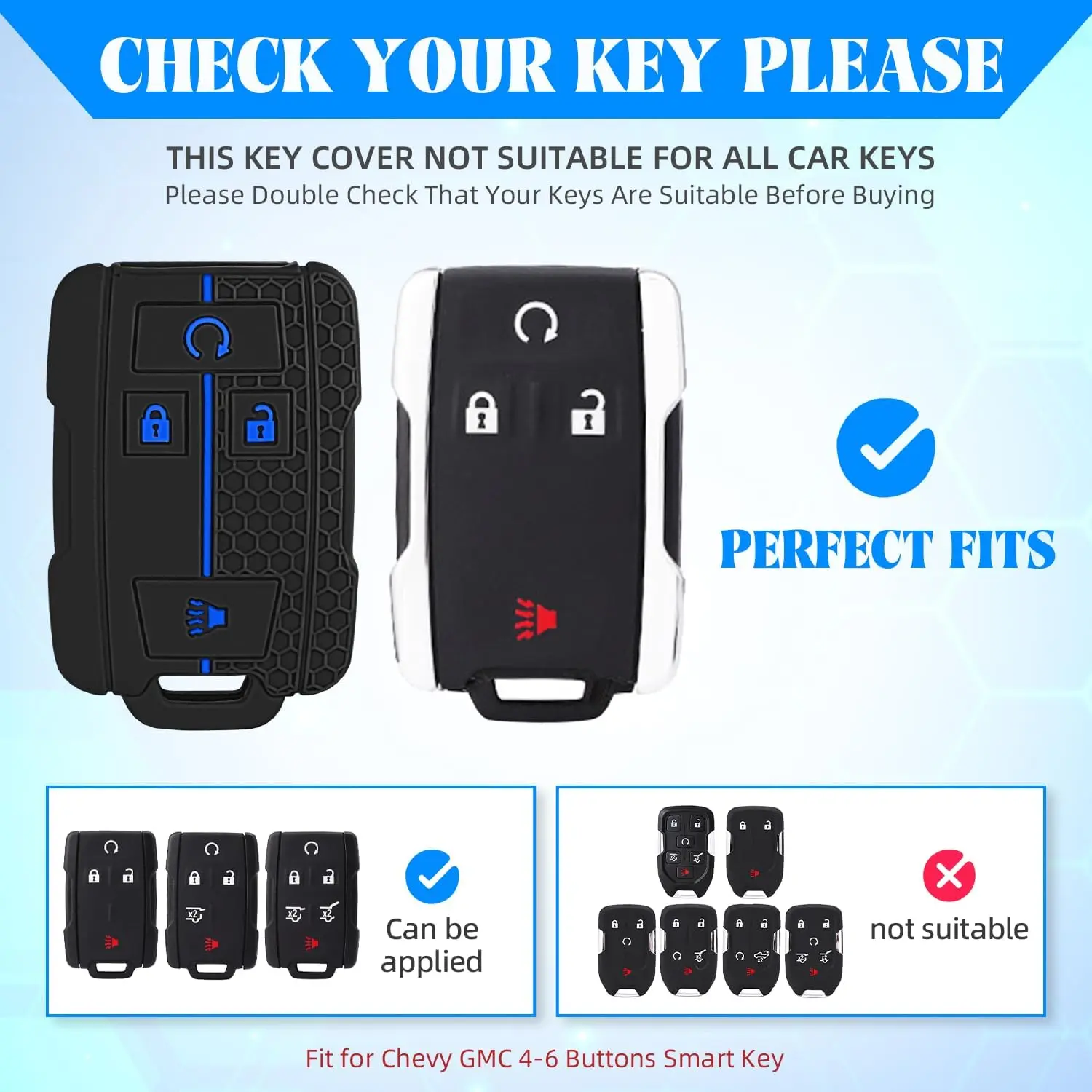 Fit Models: The key fob cover for GMC 2014-2016 Sierra 2015-2016 Yukon Canyon for Chevy 2014-2018 Silverado 2015-2017 Colorado 2014-2019 Suburban 2014-2019 Tahoe, etc 4 Buttons Key fob remote control.Please confirm that your key fob appearance matches the picture that we provided in the listing before ordering