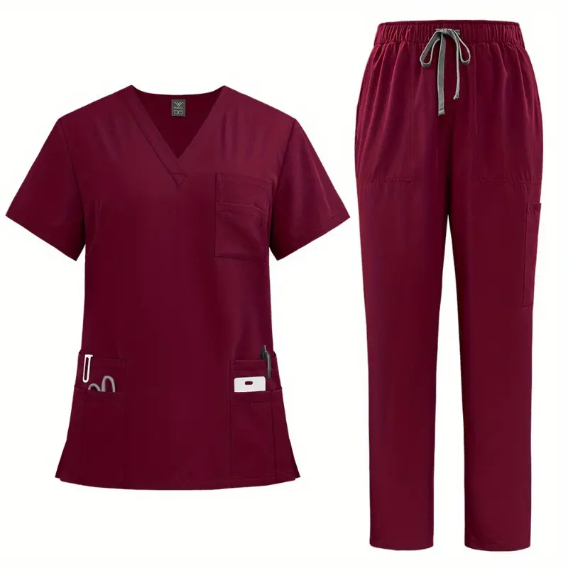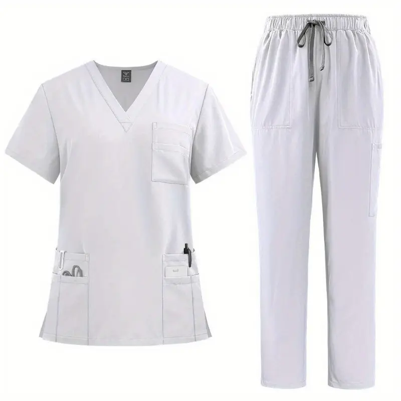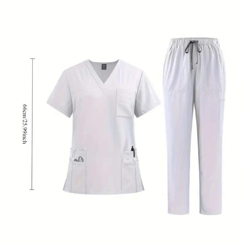 New2025Women's Professional Scrubs Suit - Comfortable Fit, V-neck Top With Pockets And Straight-leg Pants Doctors And Nurses