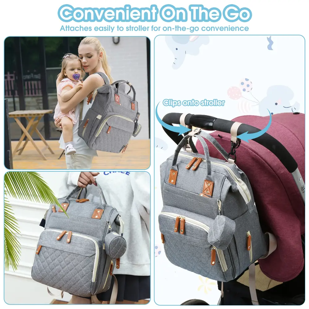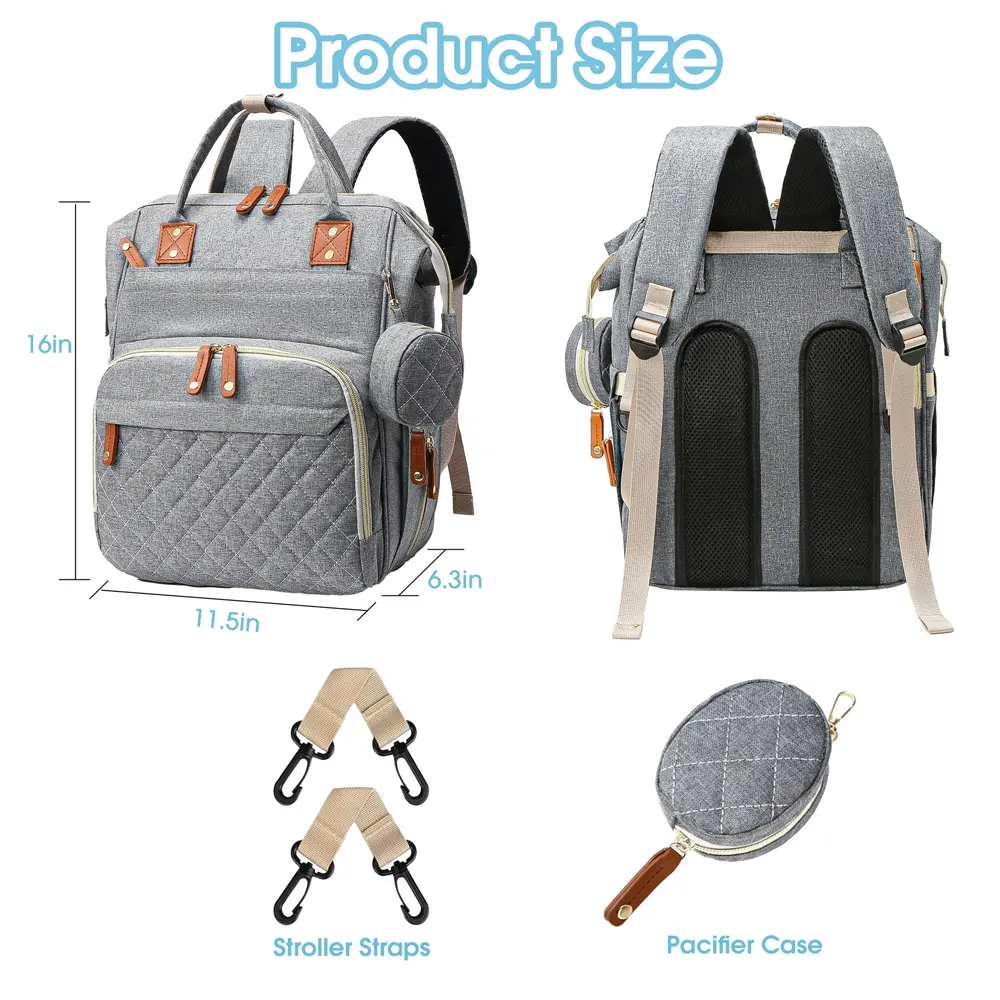 ·You’ll Get: A fashion diaper bag backpack ( size: 16” x 9” x 12”, weight: 1.9 lb), a pad (size: 27” x 19”), 2 stroller straps . 16 pockets include double zipper closure compartment and 3 insulated pockets. This baby bag is lightweight, large capacity, and looks still compact. It is convenient and makes you relax if you use it to go out.