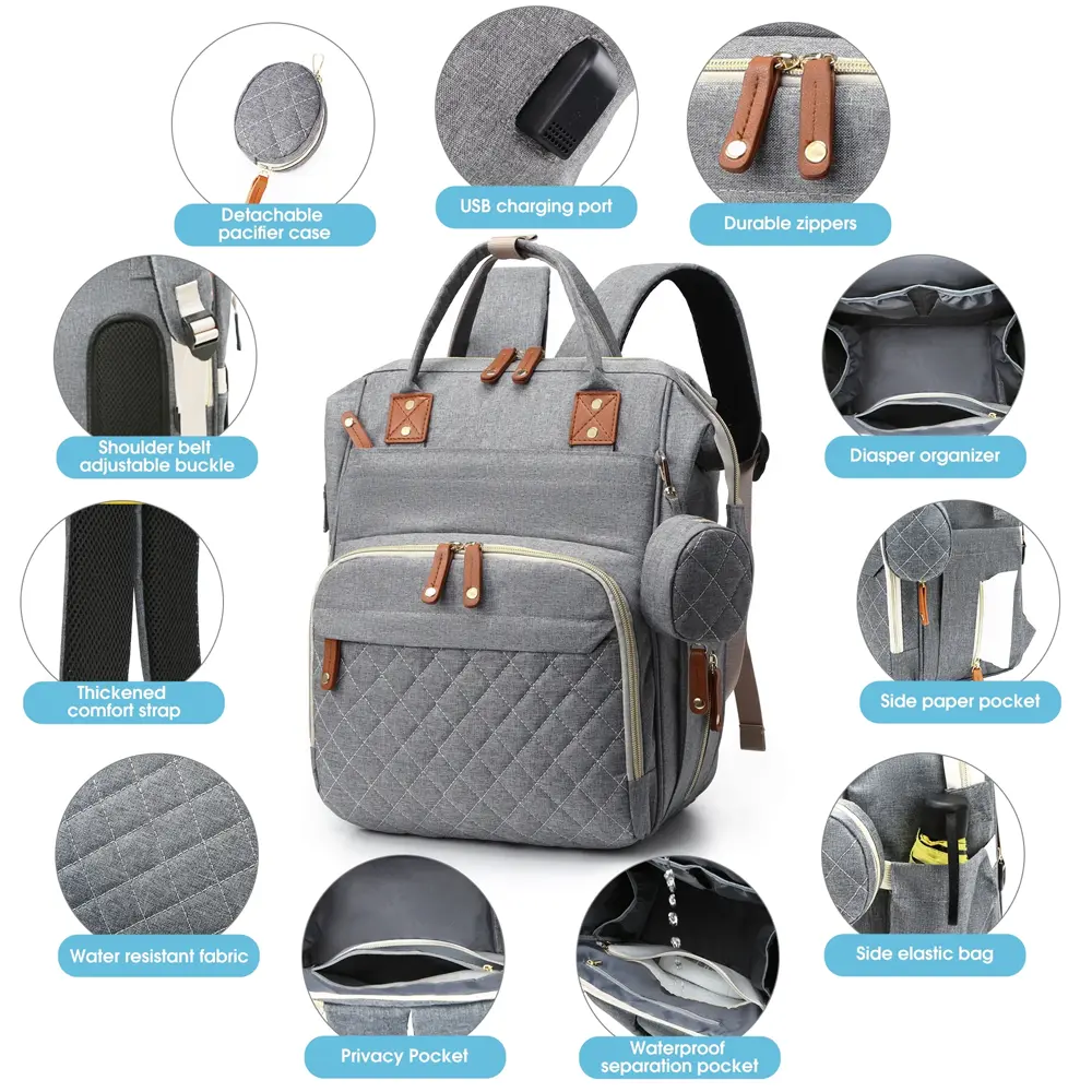 ·Durable and Non-deformable: This baby bag is made of oxford cloth, tear resistant and water resistant. High-quality metal frame is used inside to ensure that the well structure is not easy to deform. The smooth double zippers are easy to open and close. The reinforced seams of shoulder strap and handle ensure tear resistance when heavy.