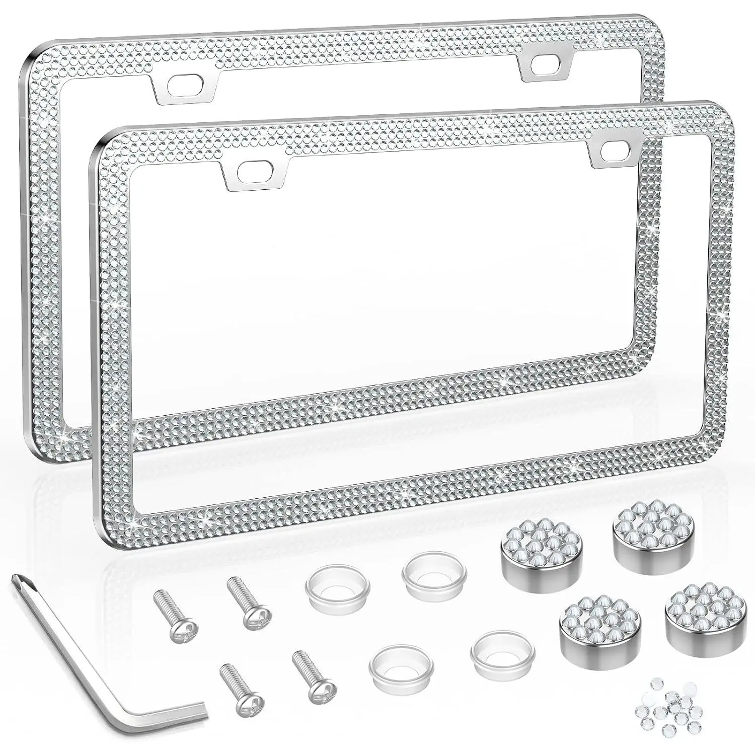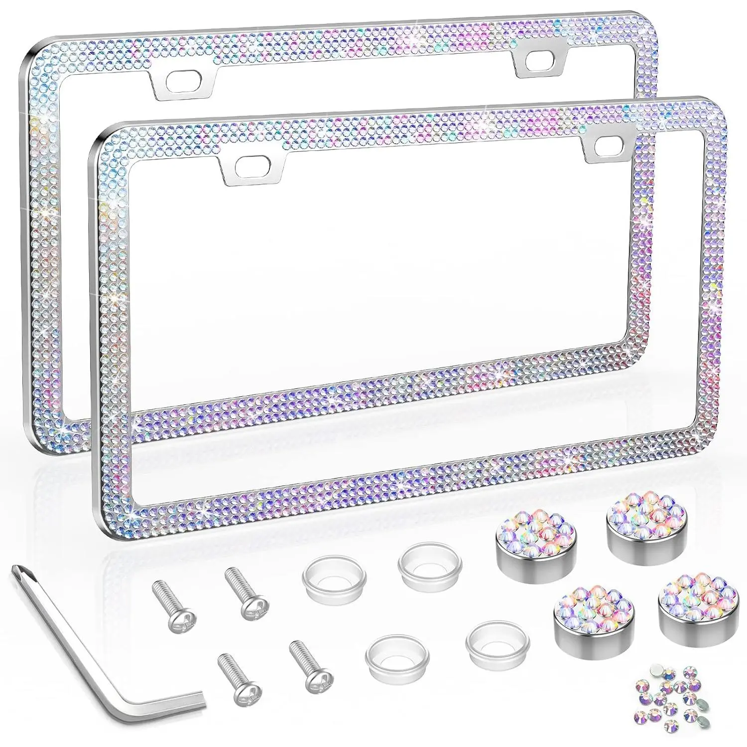 BASIC SUPPLY Bling License Plate Frame, License Plate Cover, Tag Frames, License Plate Holder with Rhinestone Screw Set - 2 Pack (AB Color)