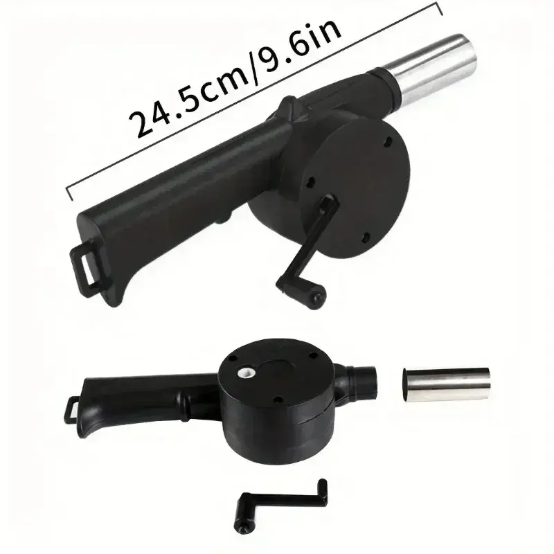 Hand Crank Design - The hand crank design of this manual fan air blower allows you to insert the handle into the hole on the blower side and turn the handle manually to create wind, increasing firepower for BBQ use. Please follow the arrow directions to crank the blower and do not reverse operation.