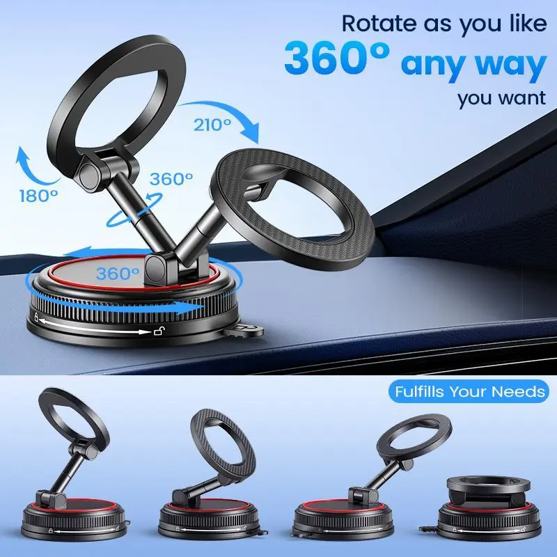 360° Adjustable Vacuum Magnetic Phone Car Holder with Strong Suction Cup Base for Cars Gyms Mirrors and Bathrooms Compact Foldable Design Steering Wheel Stand,Christmas