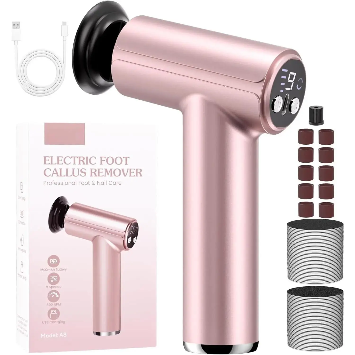 [9 Speeds Adjustable] by a high-quality , our callus remover for supports up to 800RPM with 9 speed adjustment and dual-direction rotation which applicable to different and calluses(the high-speed mode quickly tackles tough calluses and rough patches, while the low-speed mode is gentle for delicate areas).Electric foot callus remover can easily to control, its speed as your request, fast or slow, more convenient and safer