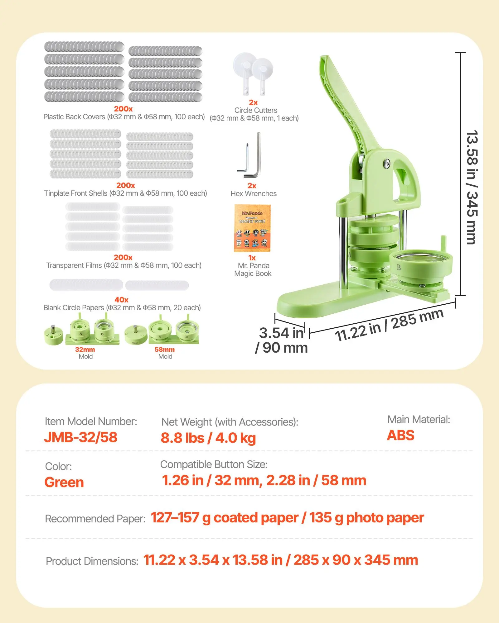 2-in-1 Design: Our button maker machine includes 1.26 and 2.28 inch button parts. You can create badges in different sizes, solving the common issue of size mismatch when changing materials, providing a better user experience and creative flexibility