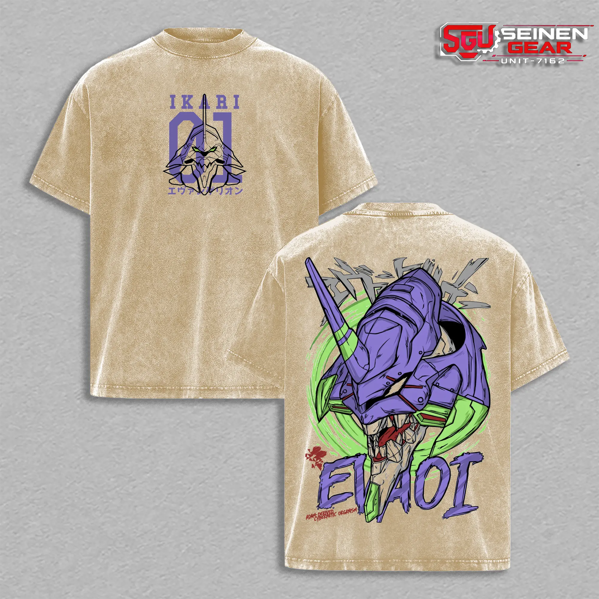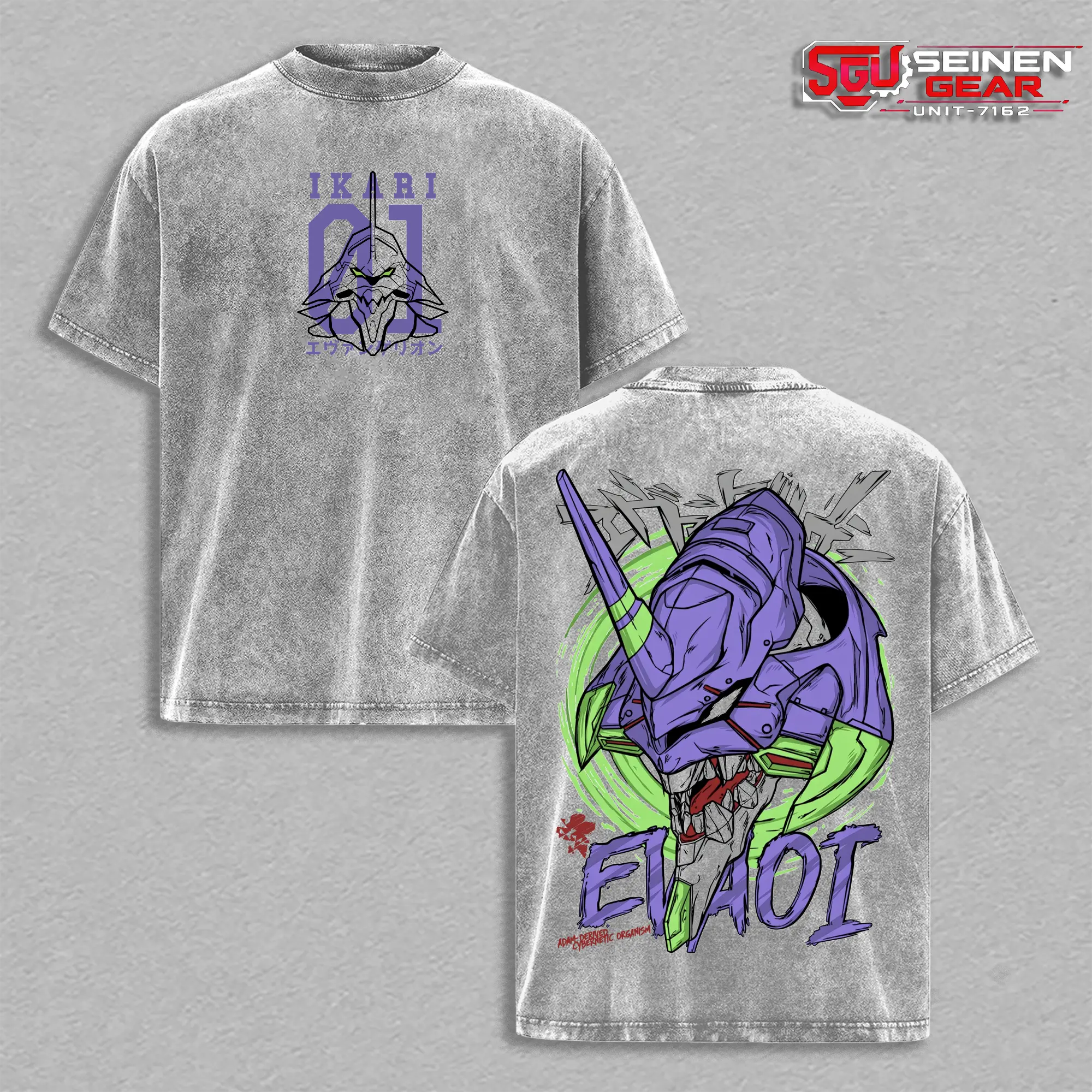 5. EVA Unit-01 Mecha Awakening Vintage Washed Oversized T-Shirt, Anime Graphic Tee, Trendy Streetwear Summer Clothes Men’s Clothing Gift Idea