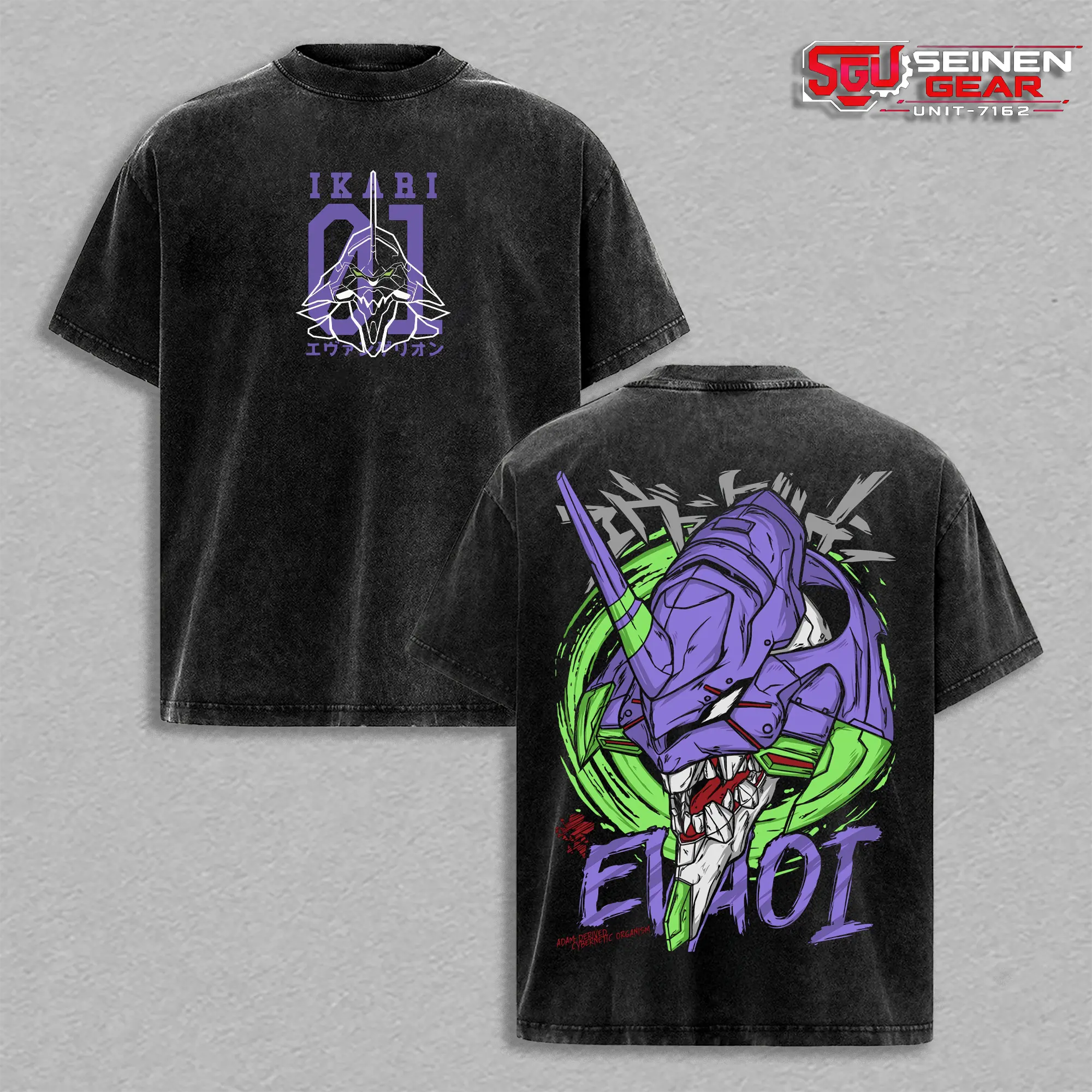 EVA Unit-01 Mecha Awakening Vintage Washed Oversized T-Shirt, Anime Graphic Tee, Trendy Streetwear Summer Clothes Men’s Clothing Gift Idea