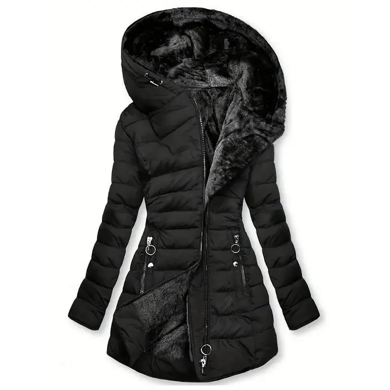 NewZip Hooded down Jacket, Casual Long Sleeve Pocket Faux Fur Lining Warm Winter Clothing, Women's Clothing