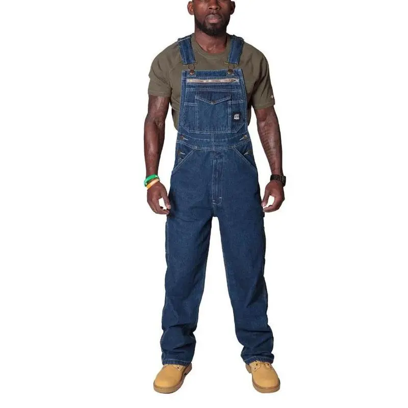 Men's Denim Overalls with Straps Ripped Denim Work Pants