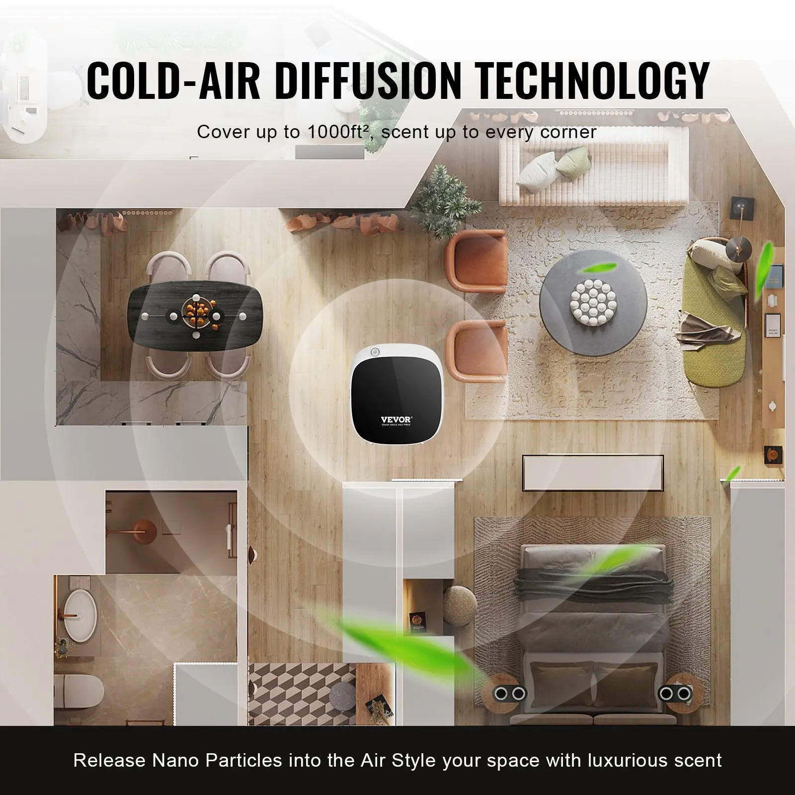 Elevate your space with VEVOR scent air machine for home! With cold air diffusion technology, 100ml large capacity, convenient Bluetooth connectivity and 2 use ways, our essential oil diffuser is the perfect addition to home or commercial use, providing a stylish scent experience that lasts.