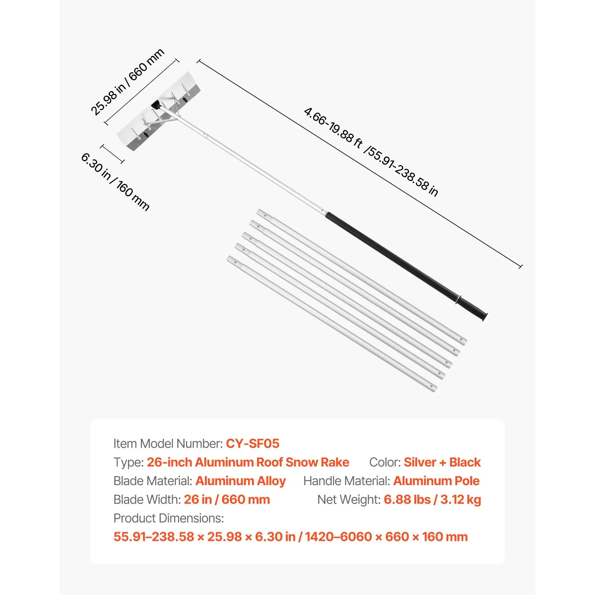 VEVOR Snow Roof Rake, Efficient Snow Removal