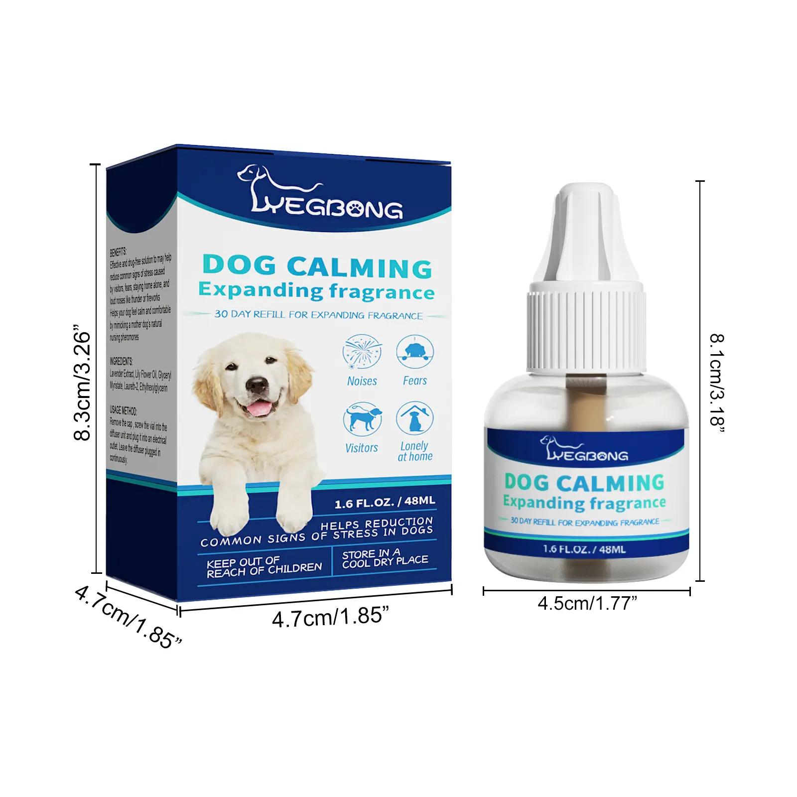 Our dog calming diffuser is designed to help reduce stress and support positive behavior. Gentle and effective, it helps your dog stay relaxed during anxiety-inducing situations, promoting a peaceful home.