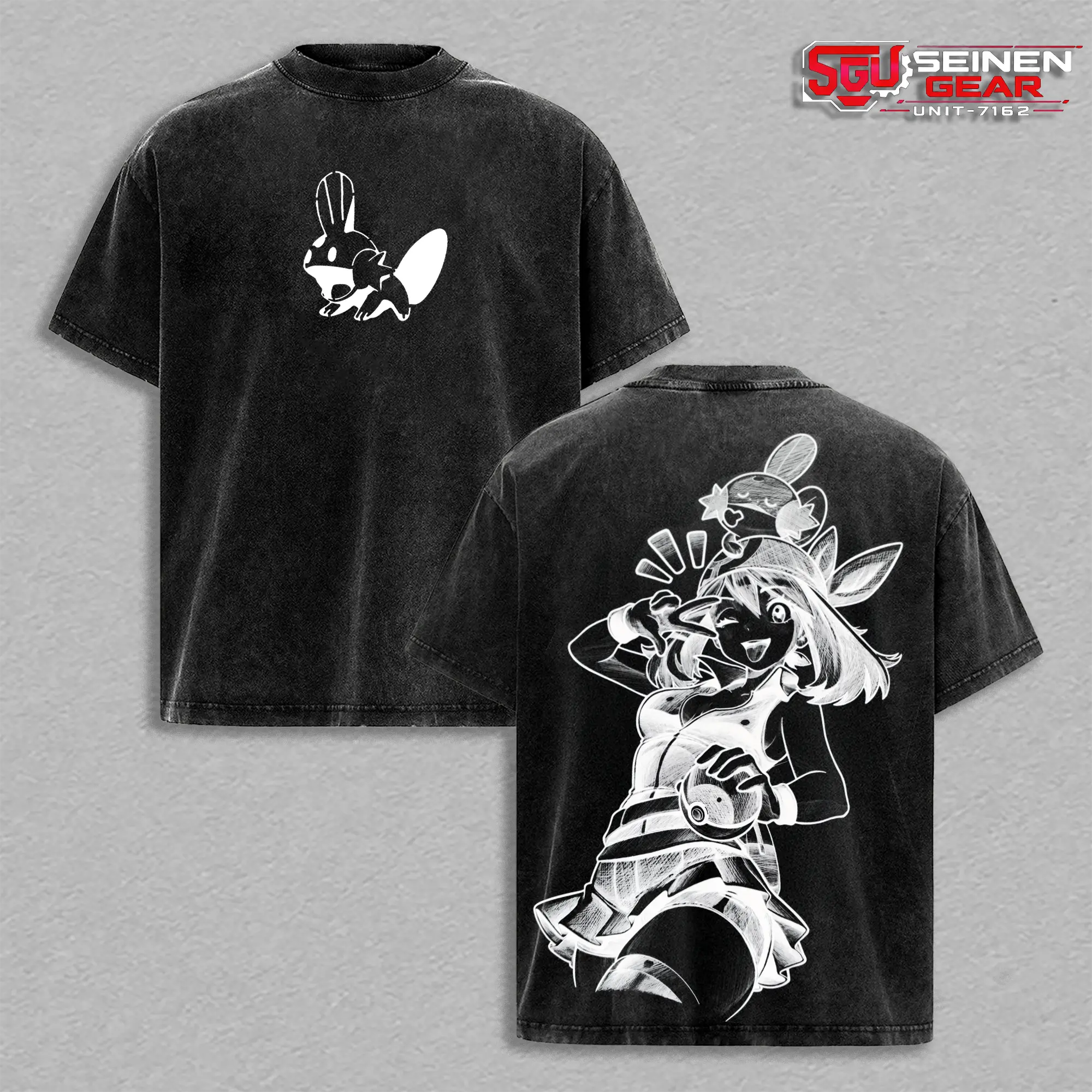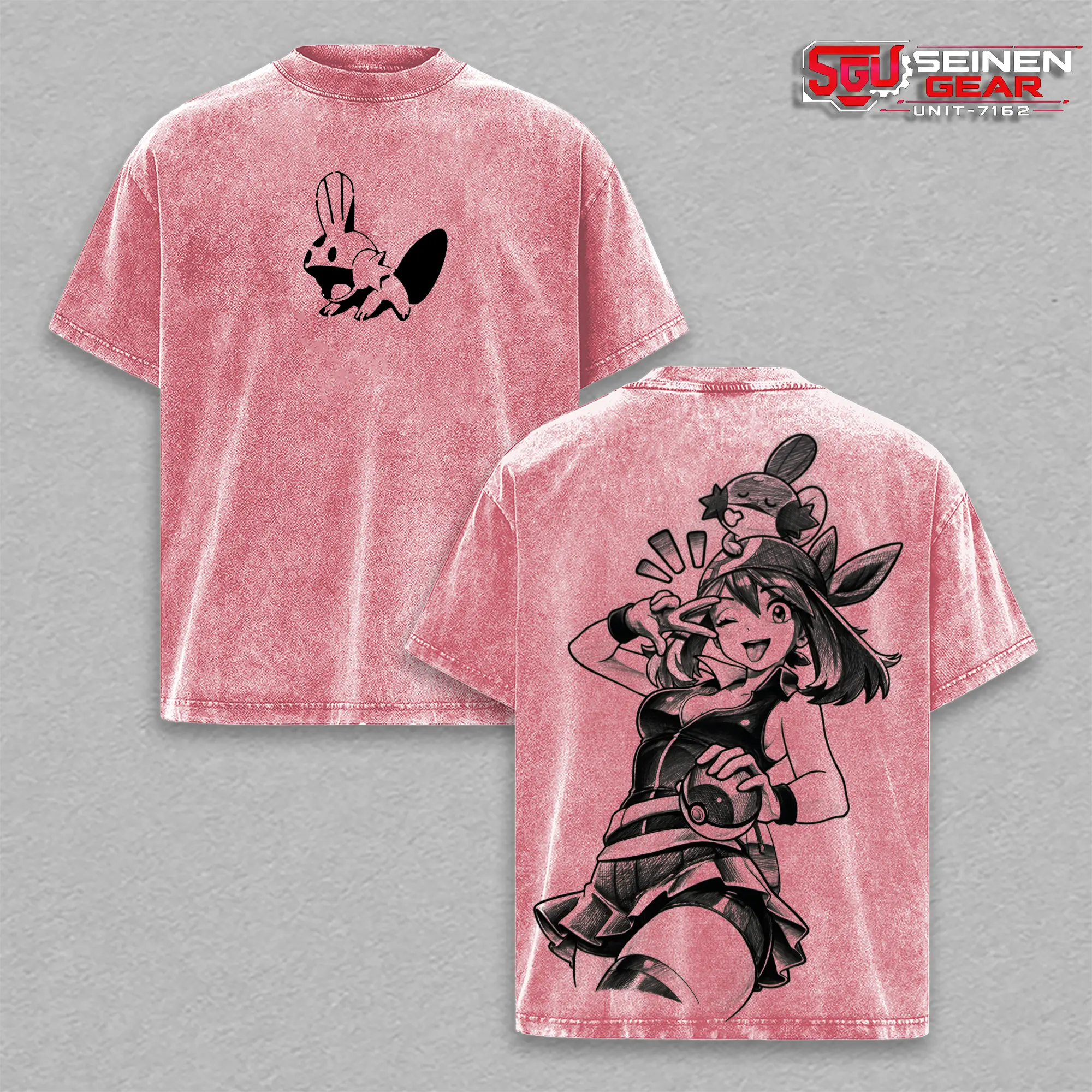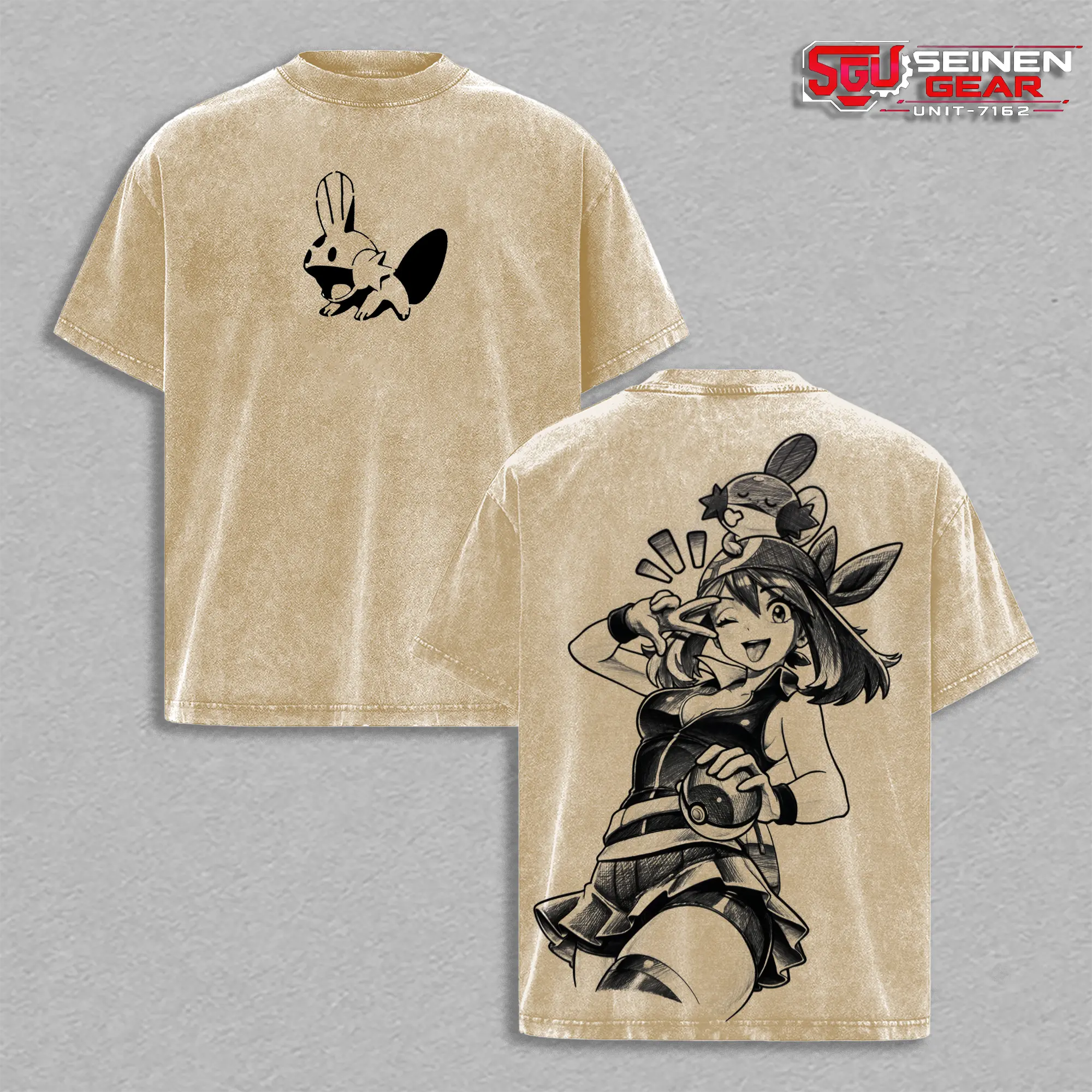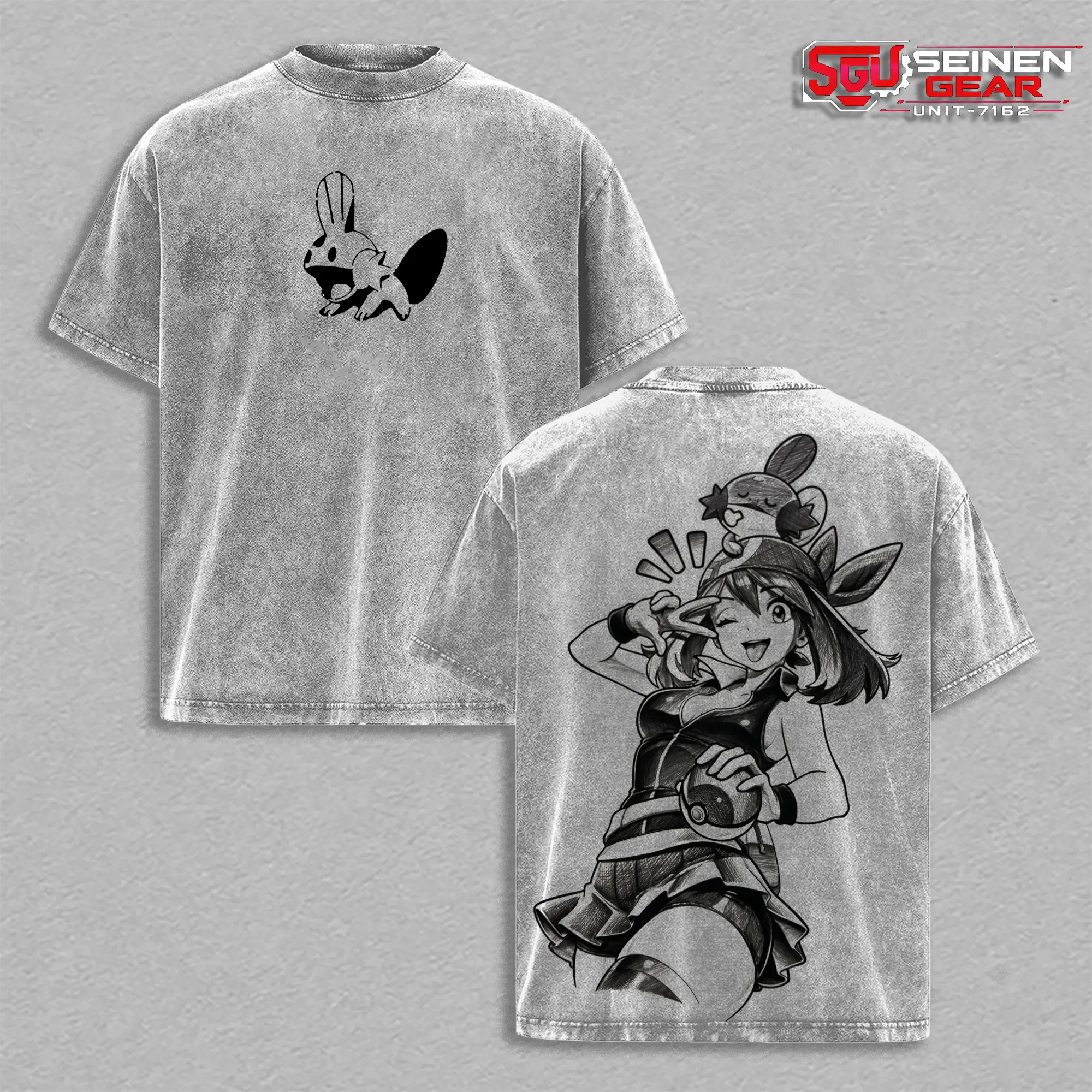 Hoenn Trainer May Cute Style T-Shirt – Vintage Washed Oversized Graphic Tee, PKM Anime Streetwear Casual, Heavy Cotton Unisex Top, Trendy Gift Idea for Him and Her