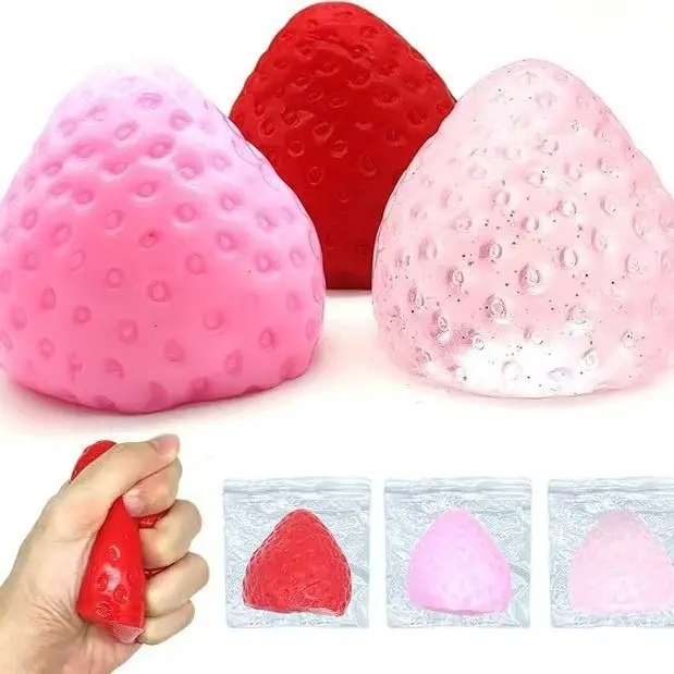 2026 New Model Tabba Strawberry Soft Rubber Toy Strawberry Stress Relief Squeeze Toy