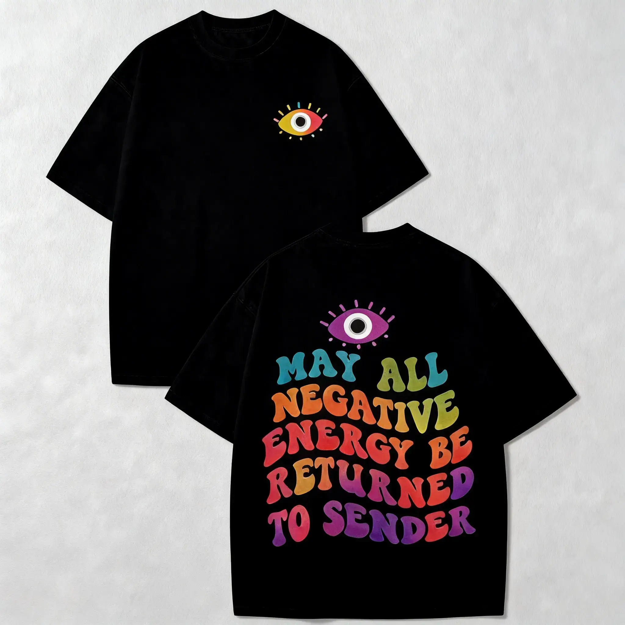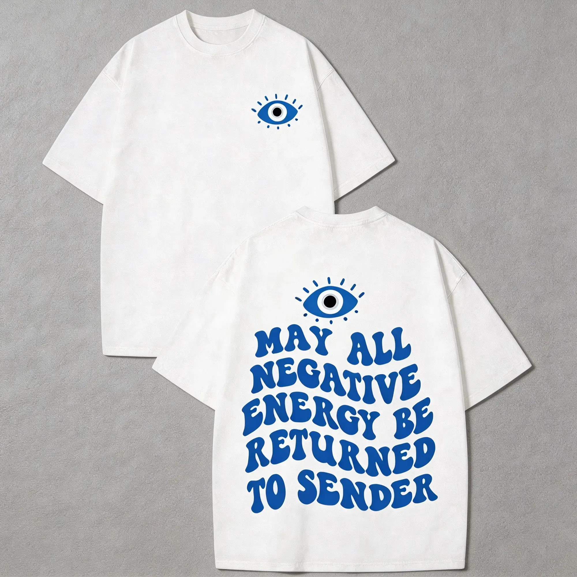 May All Negative Energy Be Returned To Sender Evil Eye Graphic T-Shirt, Vintage Oversized Retro Boho Aesthetic Tee, Spiritual Protection Positive Affirmation Streetwear Top for Men Women, Manifestation Gift & Spiritual Apparel