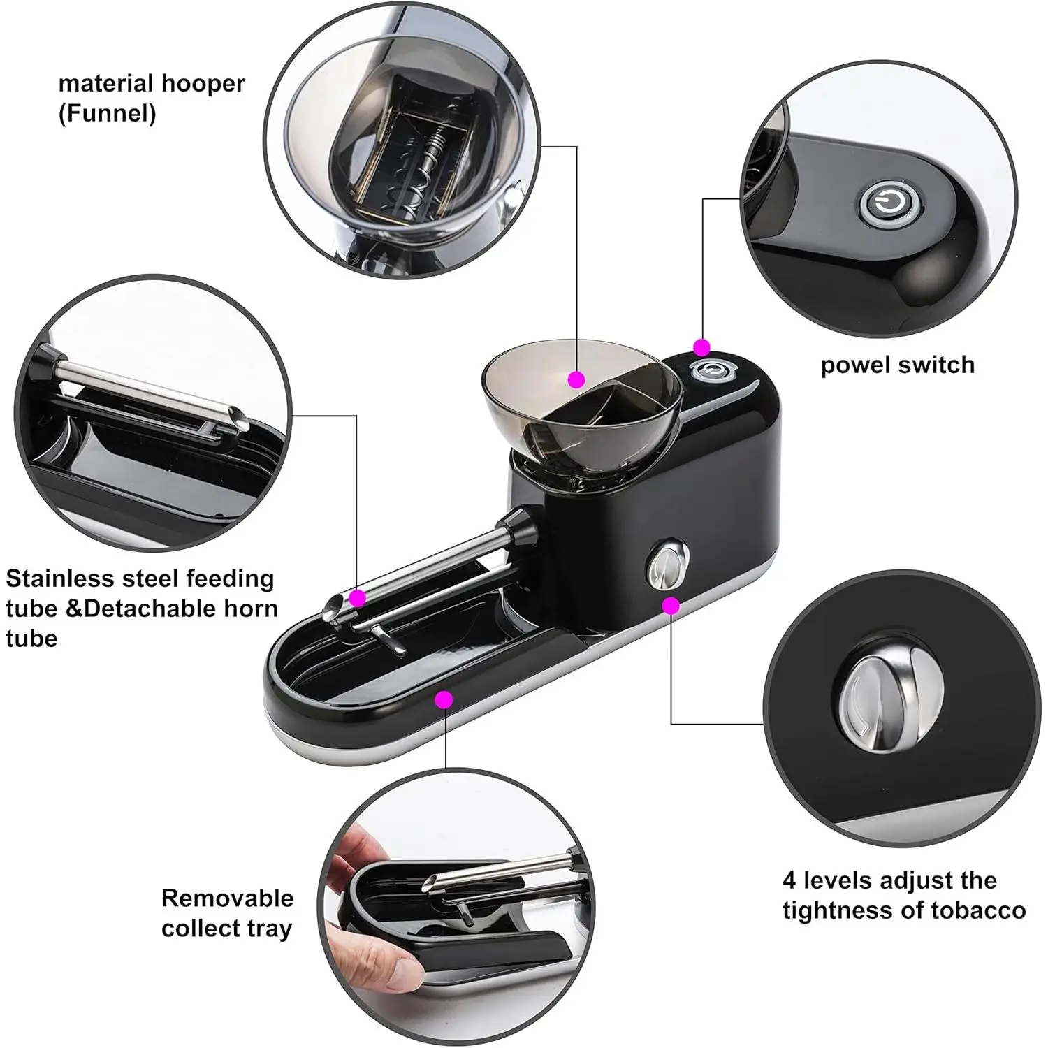 CAPTAIN Electric Cones Rollling Machine Filling Maker,1 Stirring Rod, 1 Brush(King Size, Black-Lines)